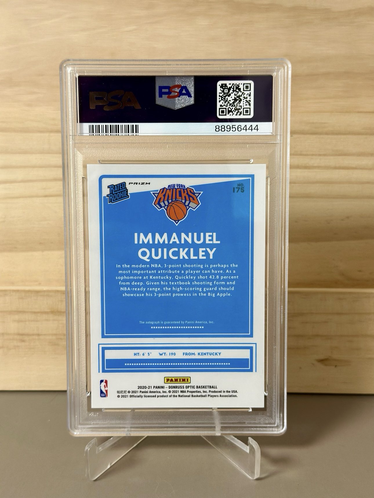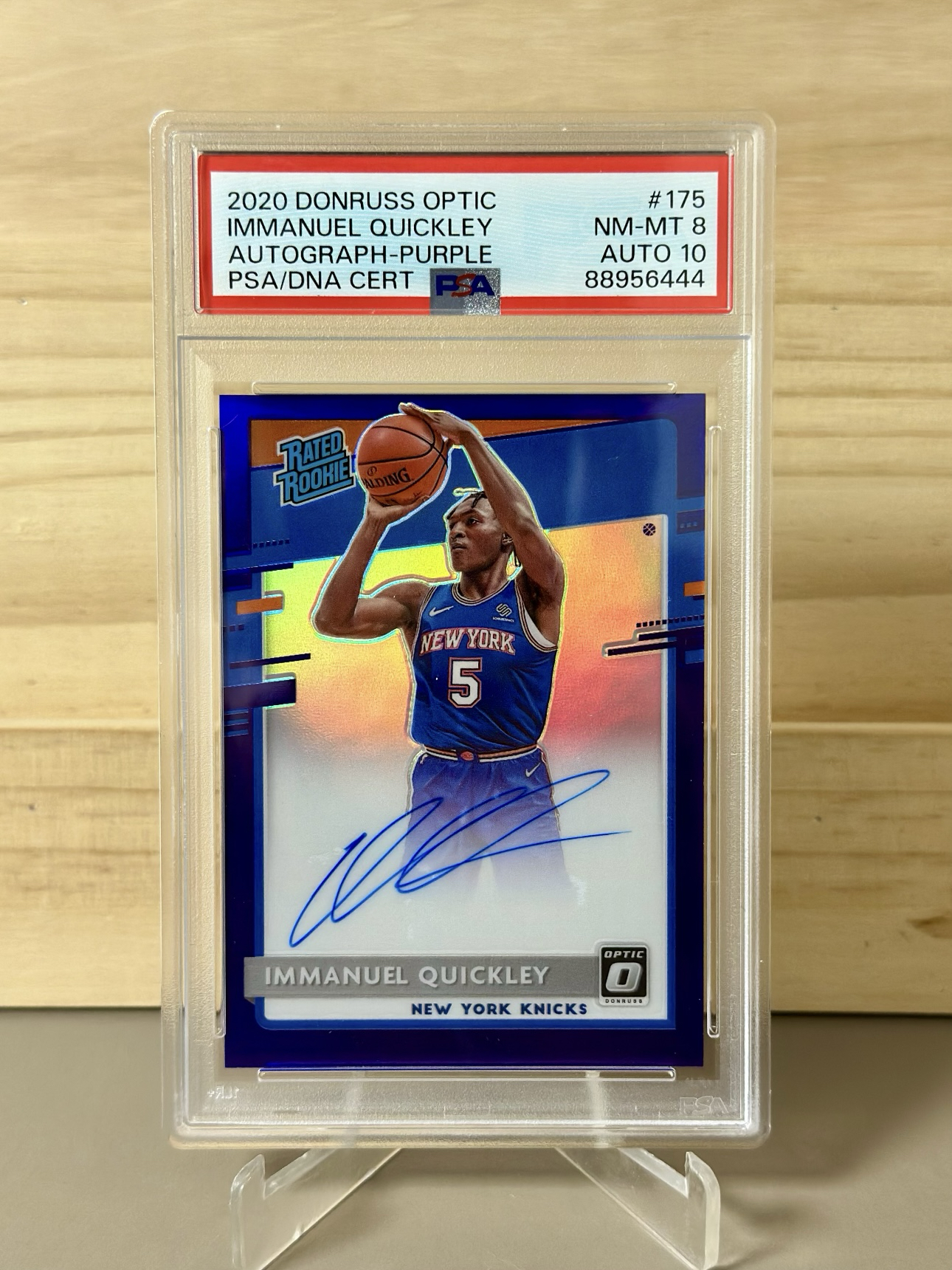 2020 Panini Optic Immanuel Quickley RC Optic 新秀 奎克利 签字 卡签 银折 折射 尼克斯 评级 PSA8签字10 fan