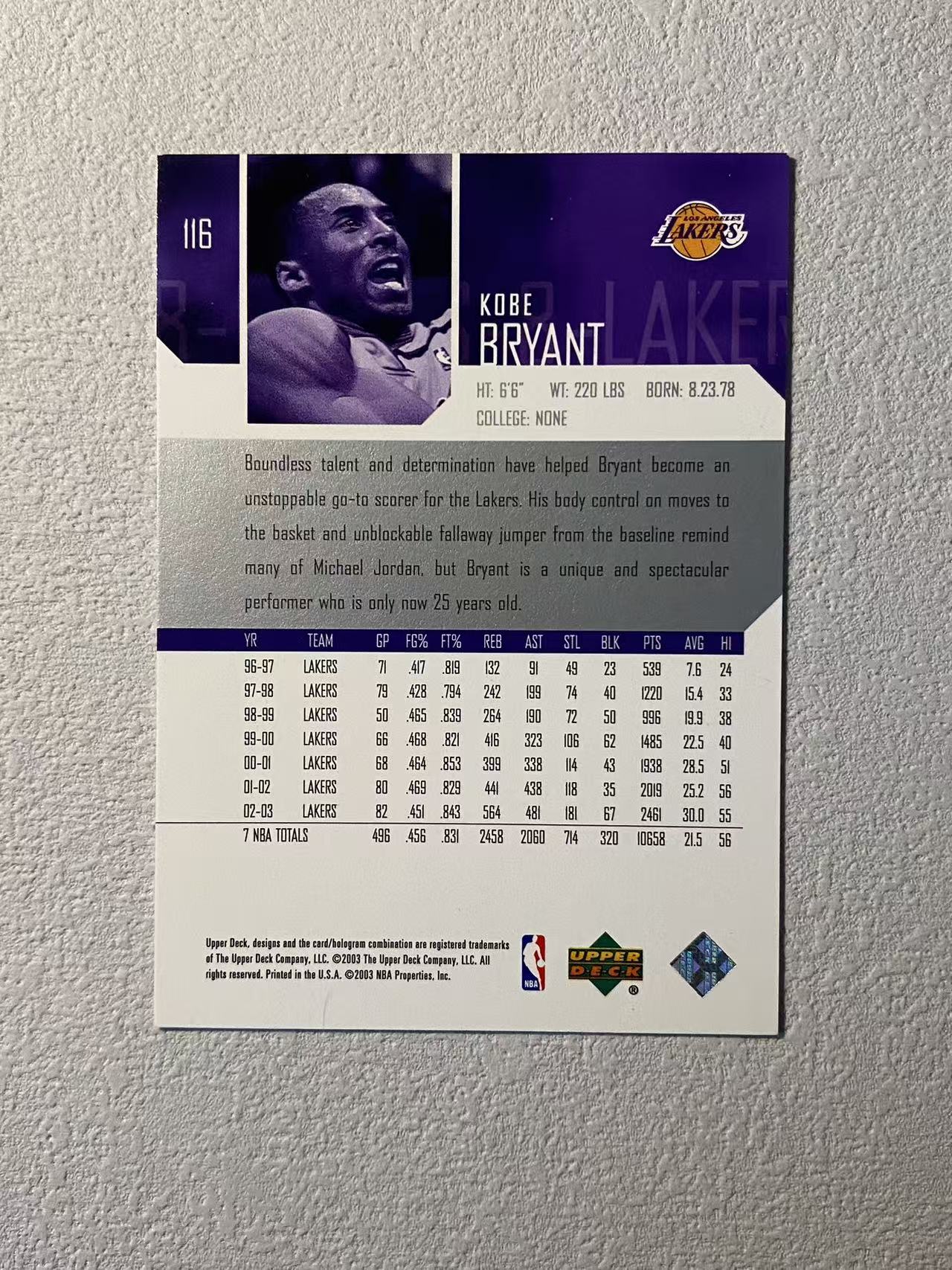 2003 Upper Deck Upper Deck Kobe Bryant ud 湖人 科比 布莱恩特 经典老特 收藏必备