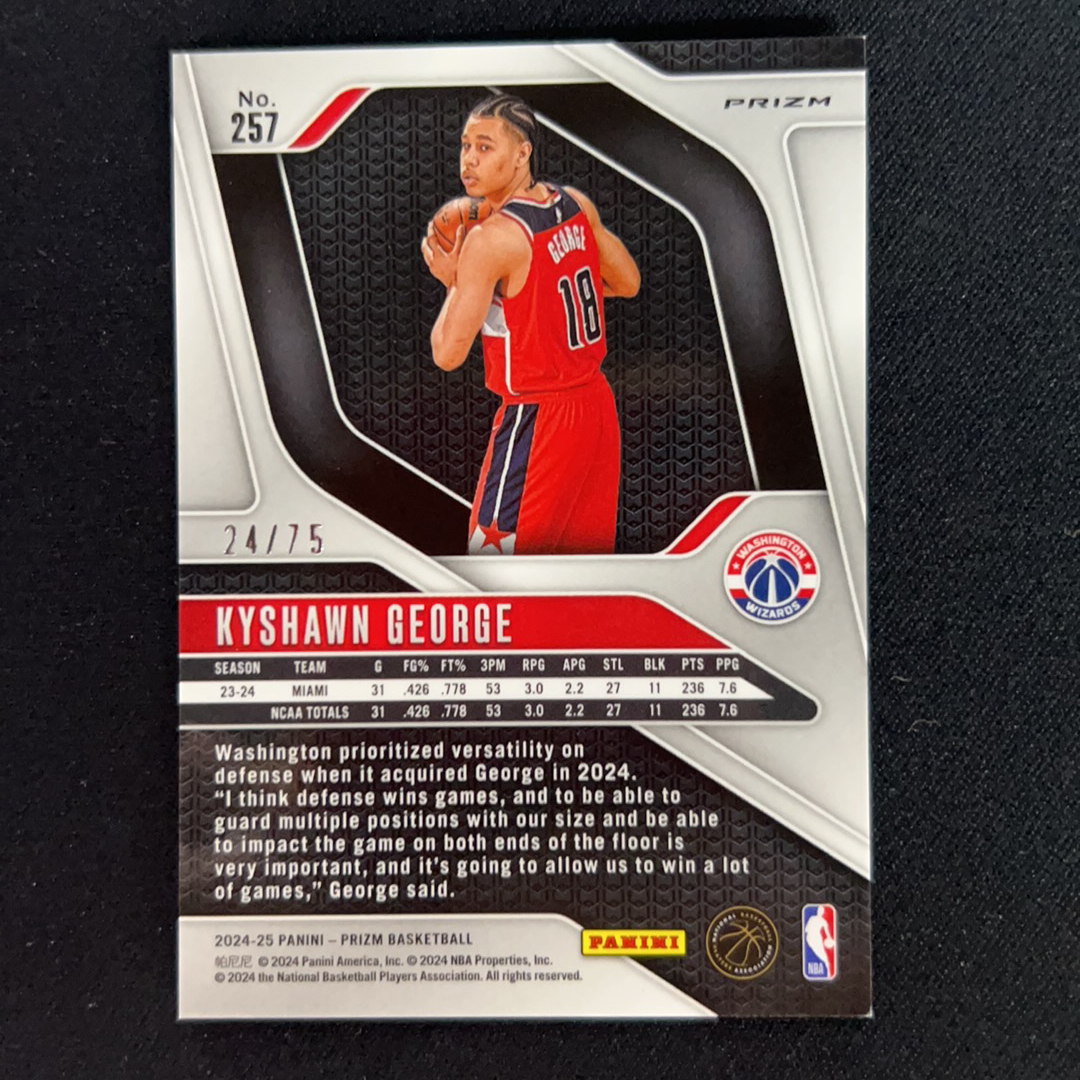 2024-25 Panini Prizm Kyshawn George 凯肖恩 乔治 奇才 新秀rc 红棋盘折 折射 24/75编 卡品如图