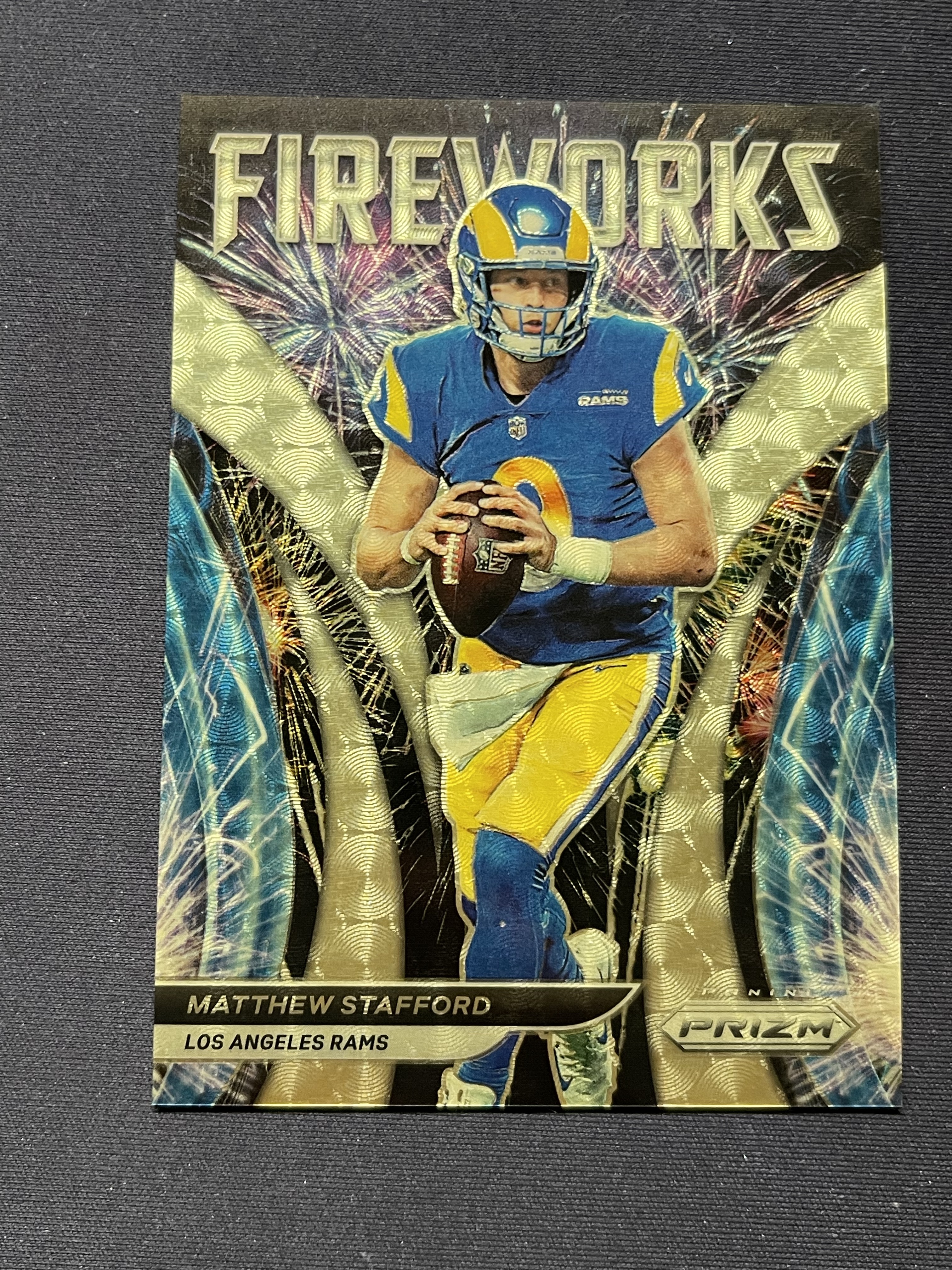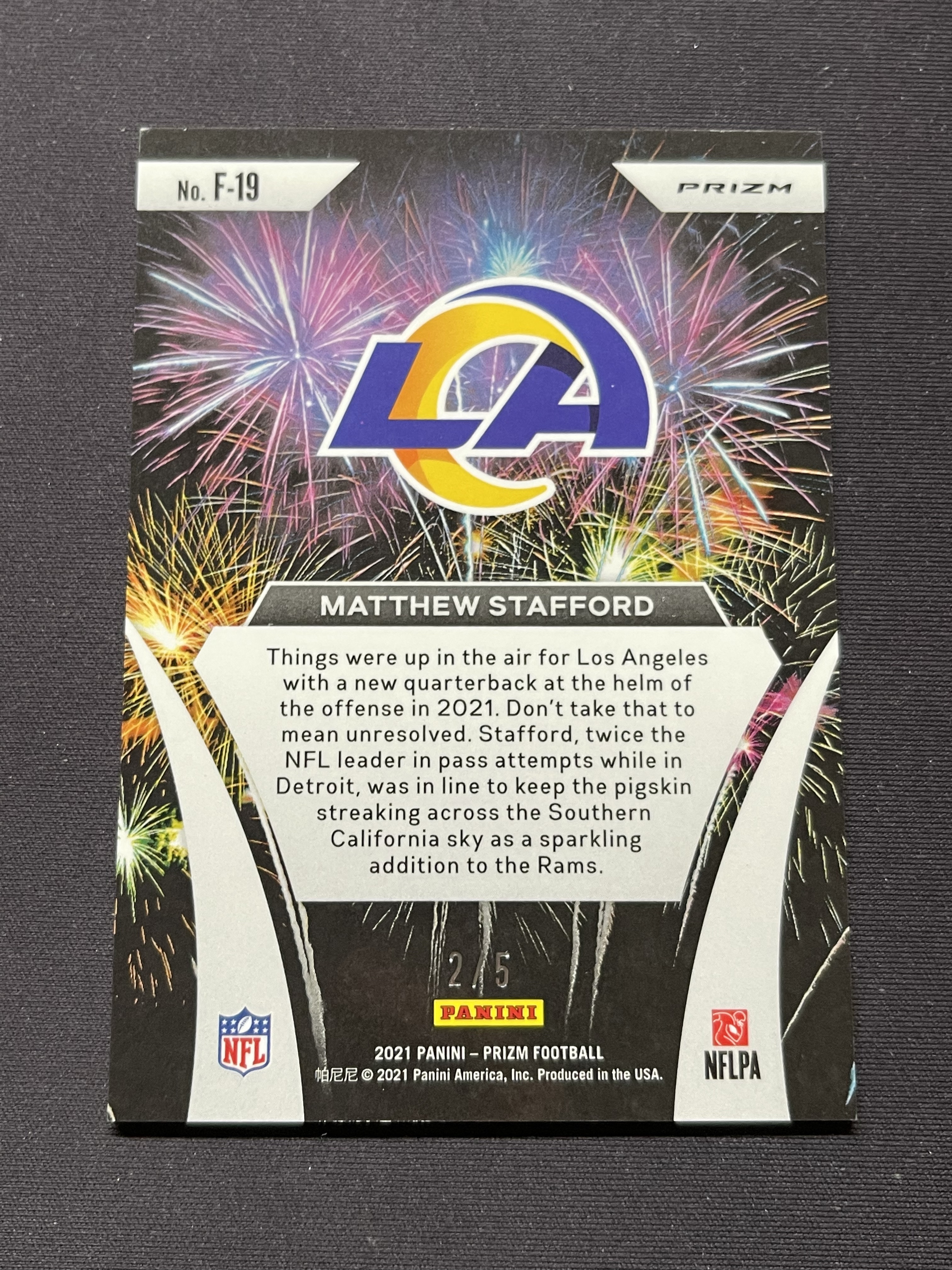 2021 Panini Prizm Matthew Stafford 橄榄球 洛杉矶闪电 斯塔福德 Fireworks 烟花 特卡折射 爆金折 2/5编 瑕疵如图 不累计「老夫子」123