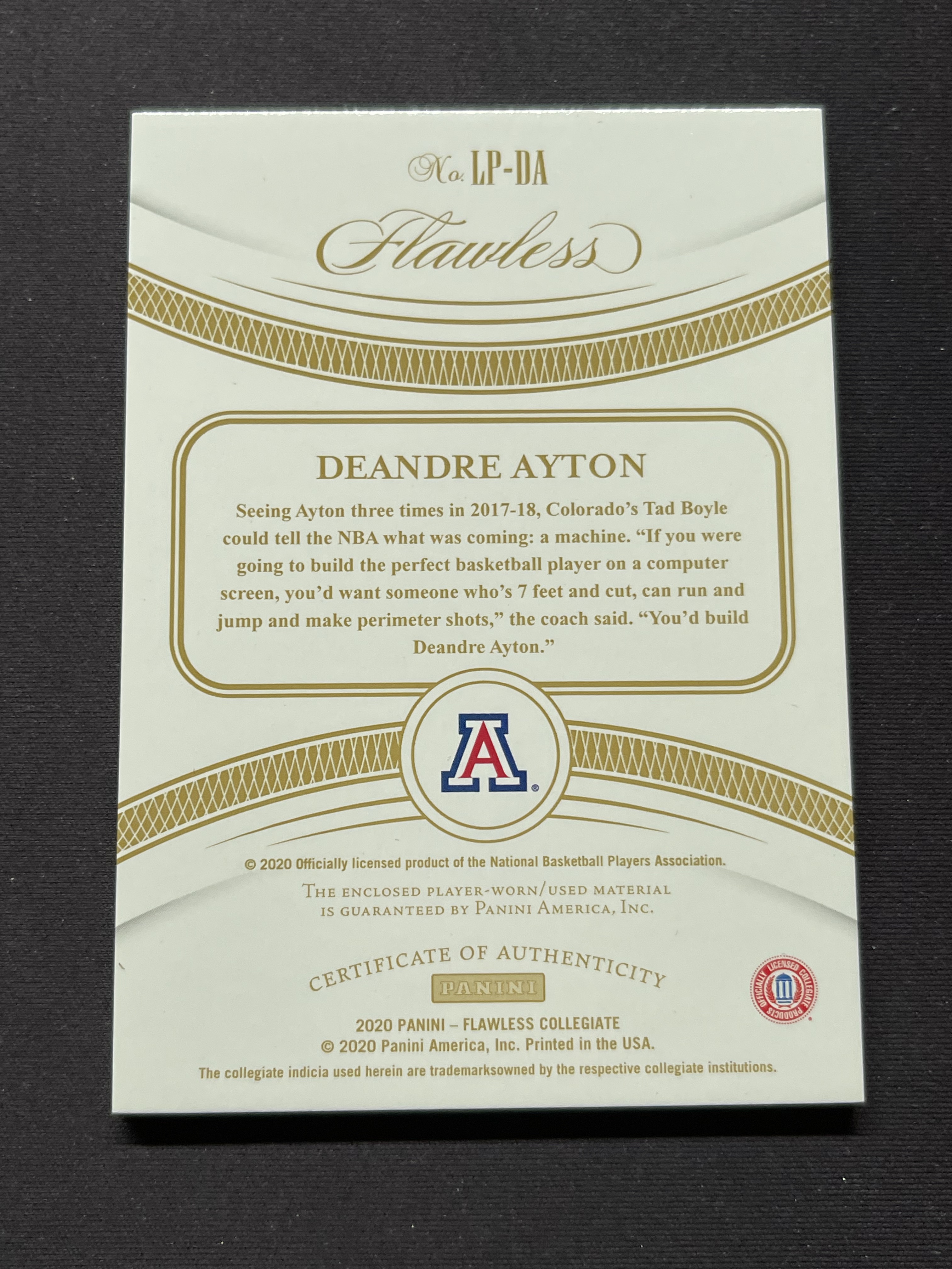 2020 Panini Flawless Deandre Ayton 手提 亚利桑那大学 艾顿 Legacy patch 05/10编 金版 瑕疵如图 不累计「老夫子」123