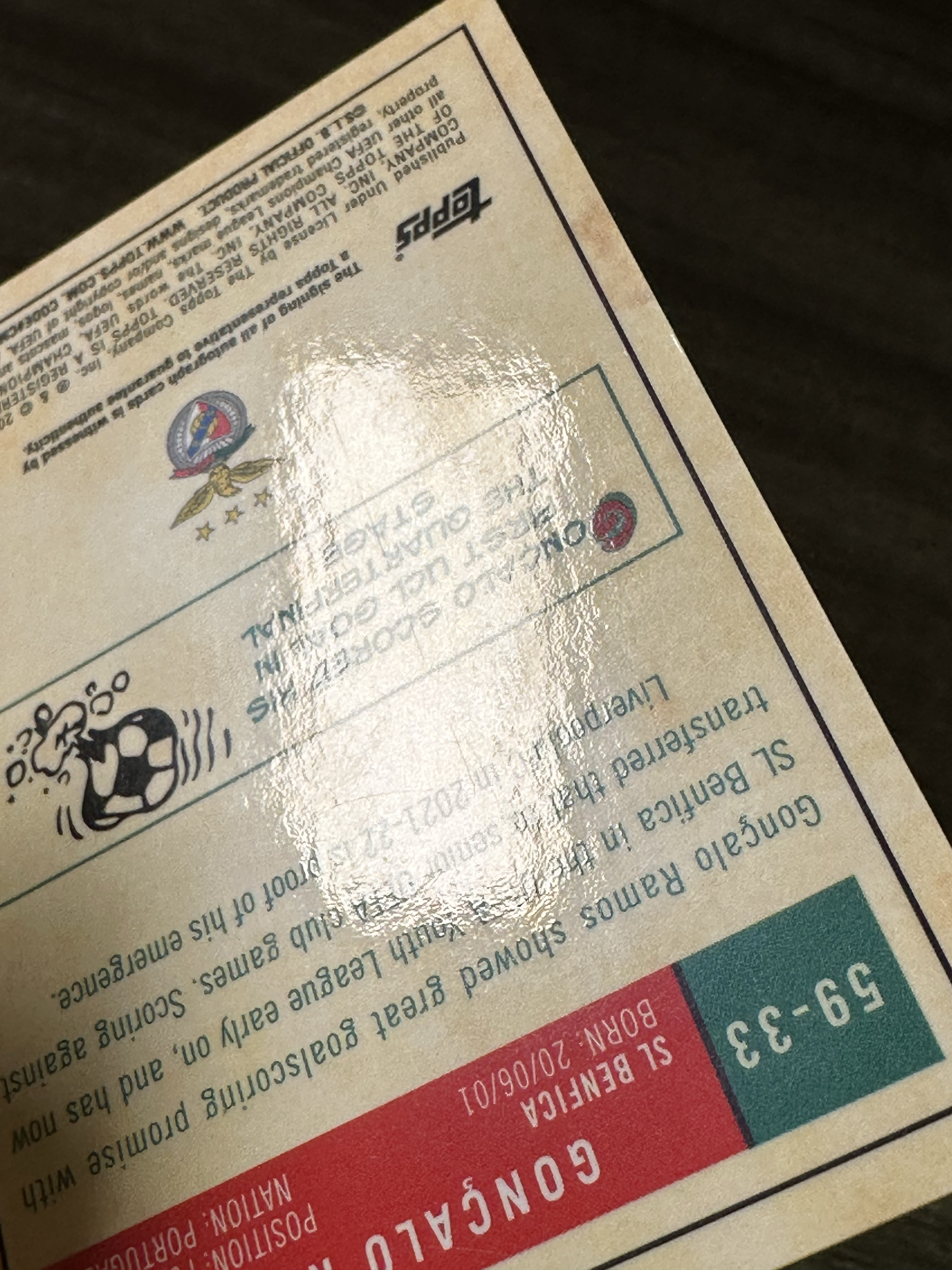 【1024拍卖】2022-23 Topps UCC Auto 复古 大头 签字 Goncalo Ramos 贡萨洛拉莫斯 本菲卡 大巴黎 瑕疵如图 新一