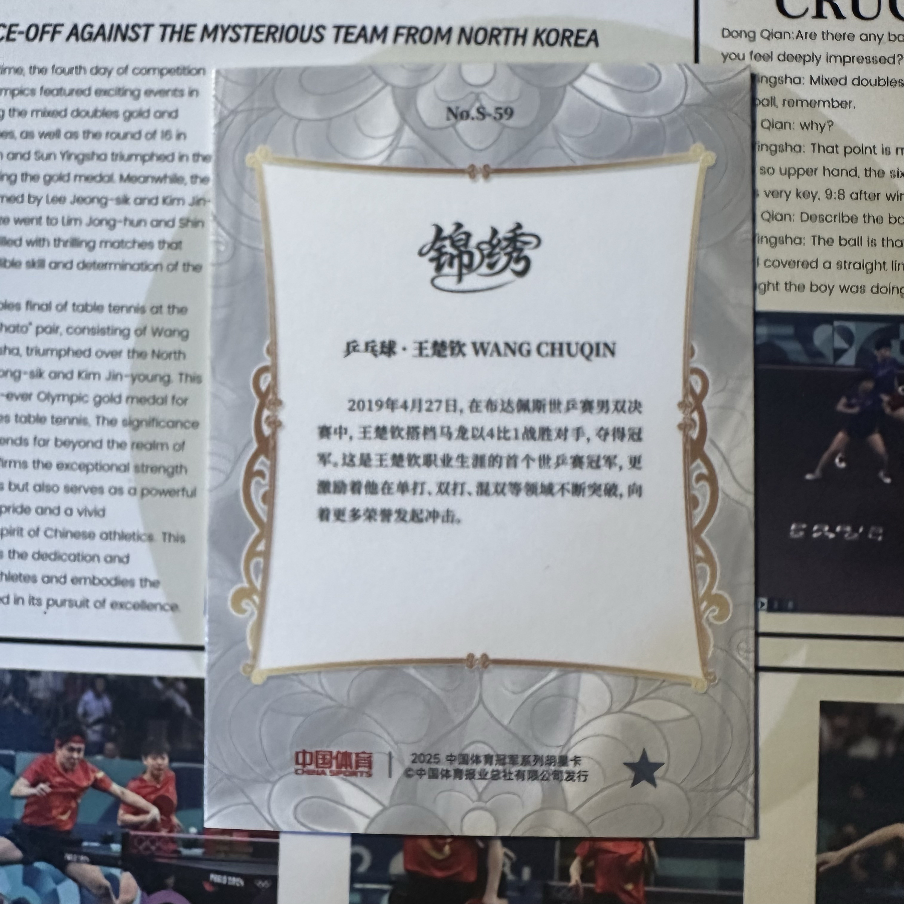 2025 奇卡 QICA 中国体育 凌云 王楚钦 锦绣系列 乒乓球 王楚钦 锦绣 特卡 卡品如图 收藏必备 孙颖莎 林诗栋 林高远 队友 卡品如图 不保卡品