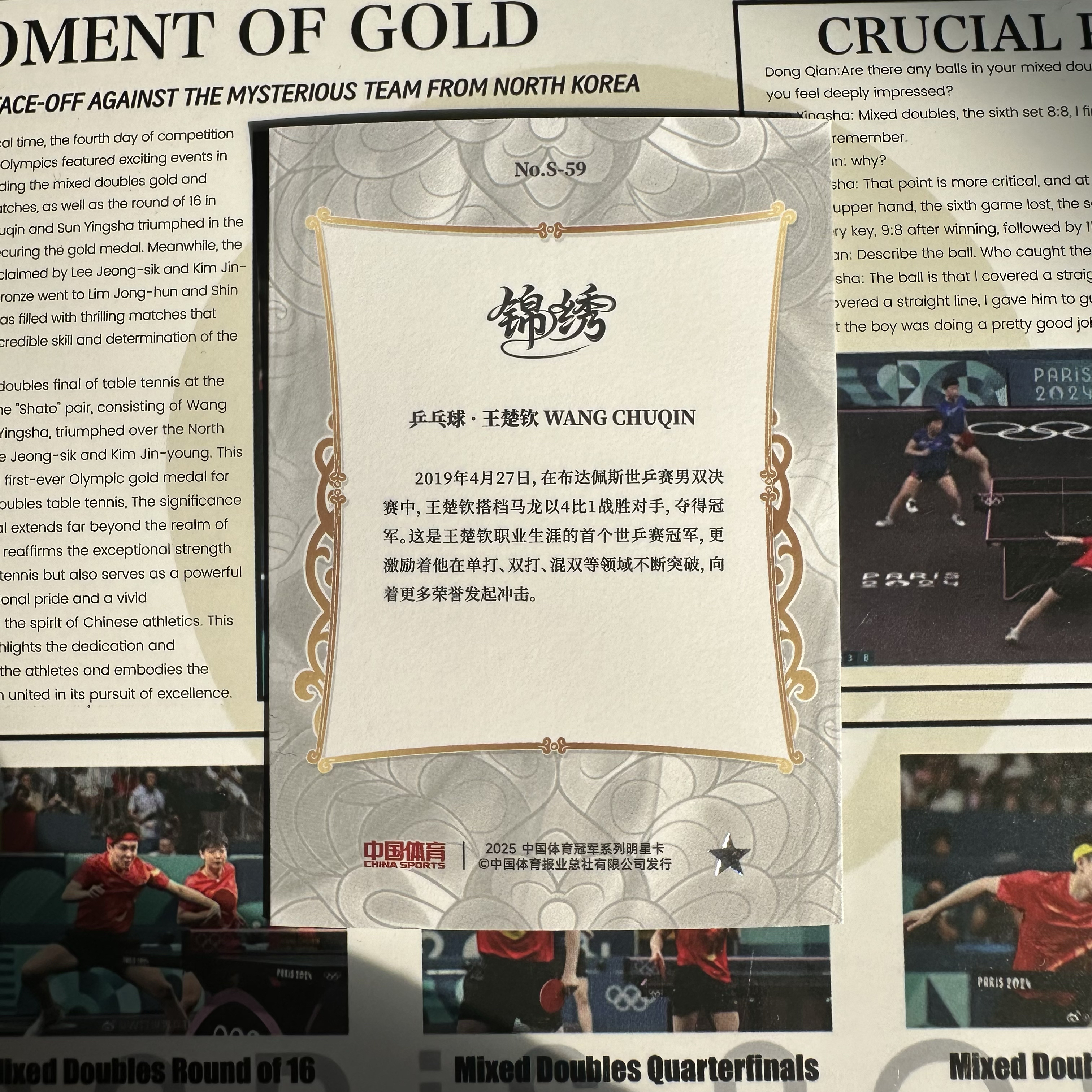 2025 奇卡 QICA 中国体育 凌云 王楚钦 锦绣 乒乓球 世界冠军 孙颖莎 林高远 林诗栋 队友 特卡 不保卡品 卡品如图