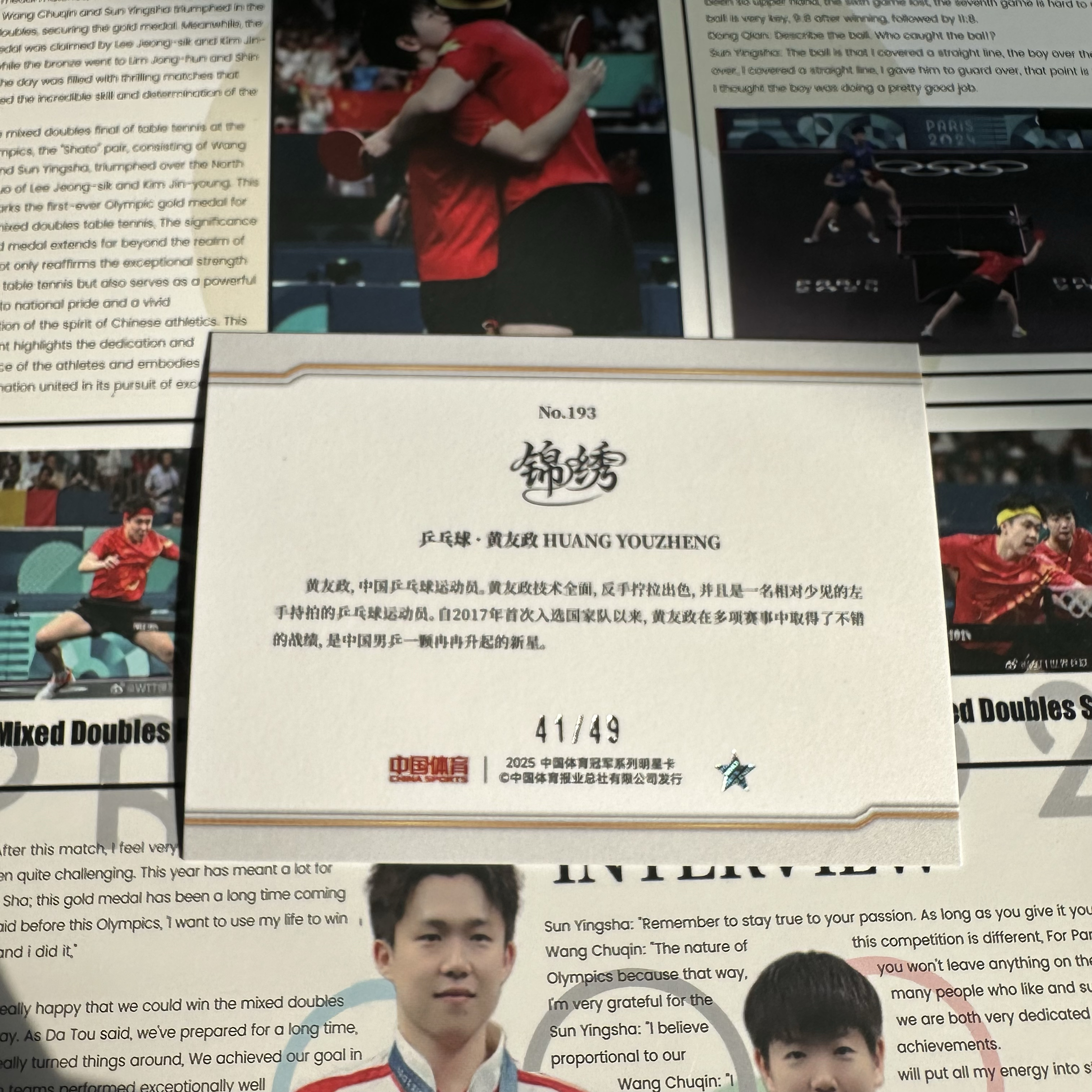 2025 奇卡 QICA 中国体育 凌云 黄友政 锦绣 乒乓球 黄友政 未来之星 49编 紫折 孙颖莎 王楚钦 林高远 卡品如图 不保卡品