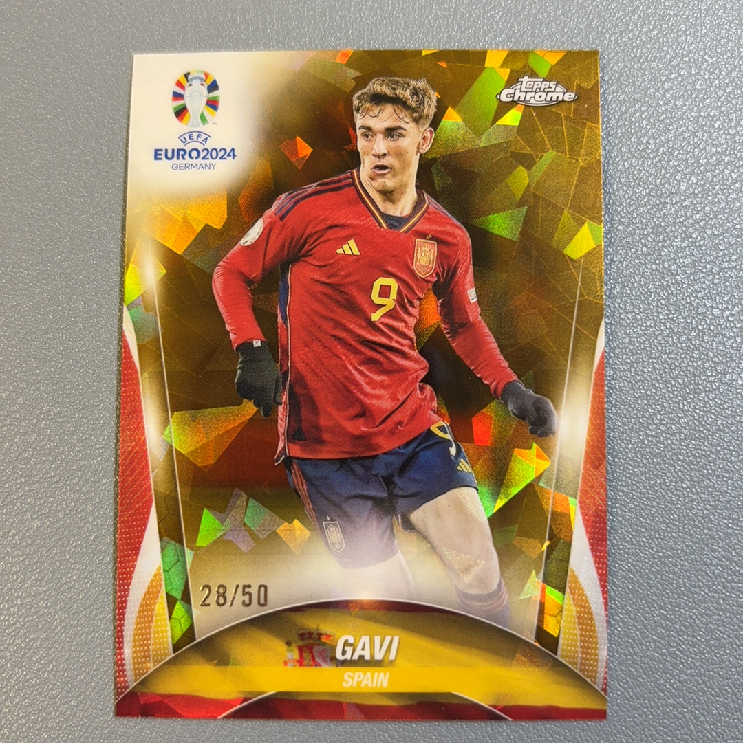 【风速狗】2024 Topps Chrome 元年 欧洲杯蓝宝石 蓝宝石 欧洲杯TC 西班牙 巴萨 巴塞罗那 GAVI 加维 金碎冰折 28/50编 路