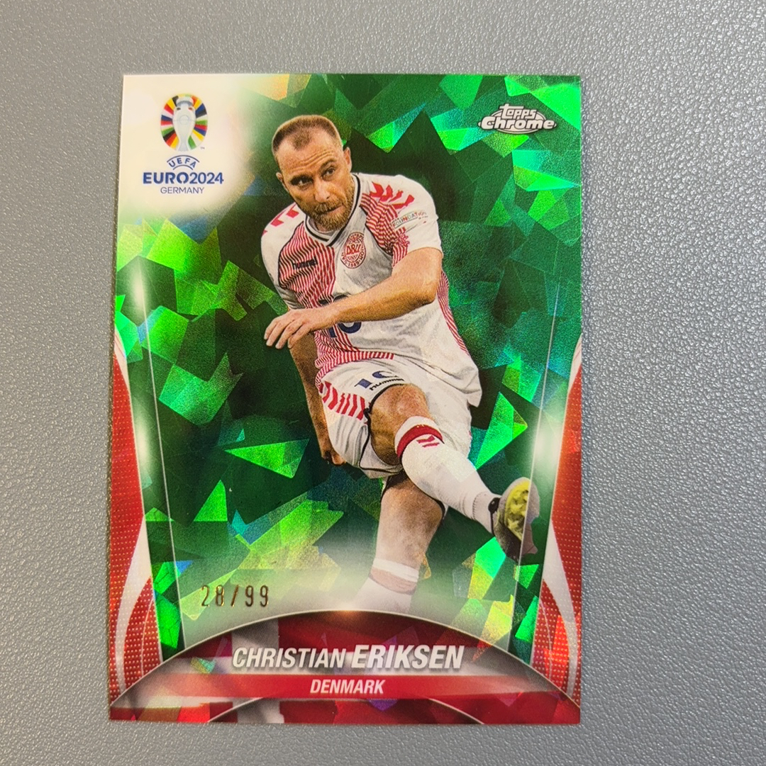 【风速狗】2024 Topps Chrome 元年 欧洲杯蓝宝石 欧洲杯TC 蓝宝石 Christian Eriksen 欧洲杯TC 蓝宝石 埃里克森 丹麦  28/99编 绿碎冰 变化版 轻印 路