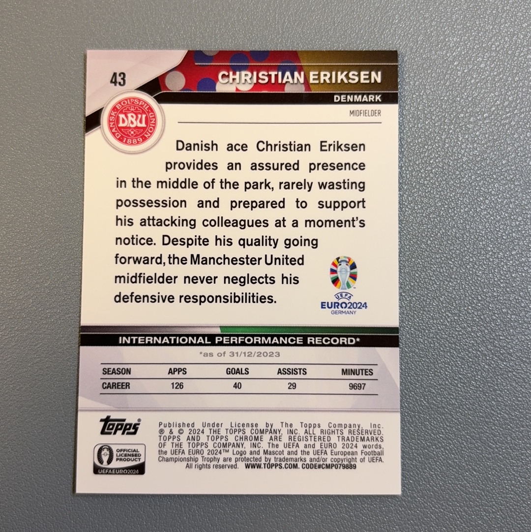 【风速狗】2024 Topps Chrome 元年 欧洲杯蓝宝石 欧洲杯TC 蓝宝石 Christian Eriksen 欧洲杯TC 蓝宝石 埃里克森 丹麦 28/99编 绿碎冰 变化版 轻印 路