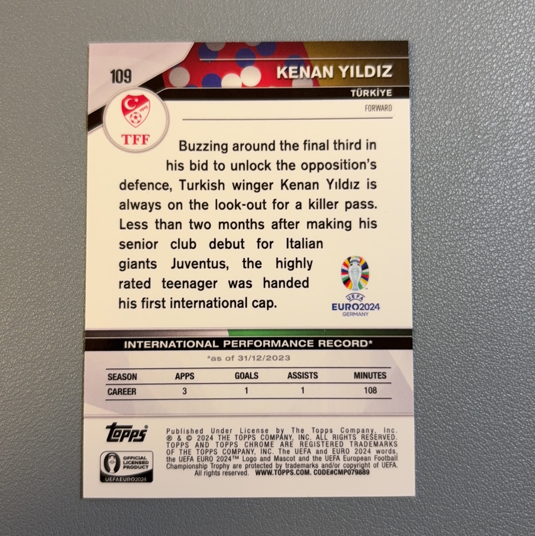 【风速狗】2024 Topps Chrome 元年 欧洲杯蓝宝石 欧洲杯TC KENAN YILDIZ 蓝宝石 尤文图斯 伊尔迪兹 变化版 新秀RC 绿碎冰折 20/99编 国家队首秀 DEBUT 路