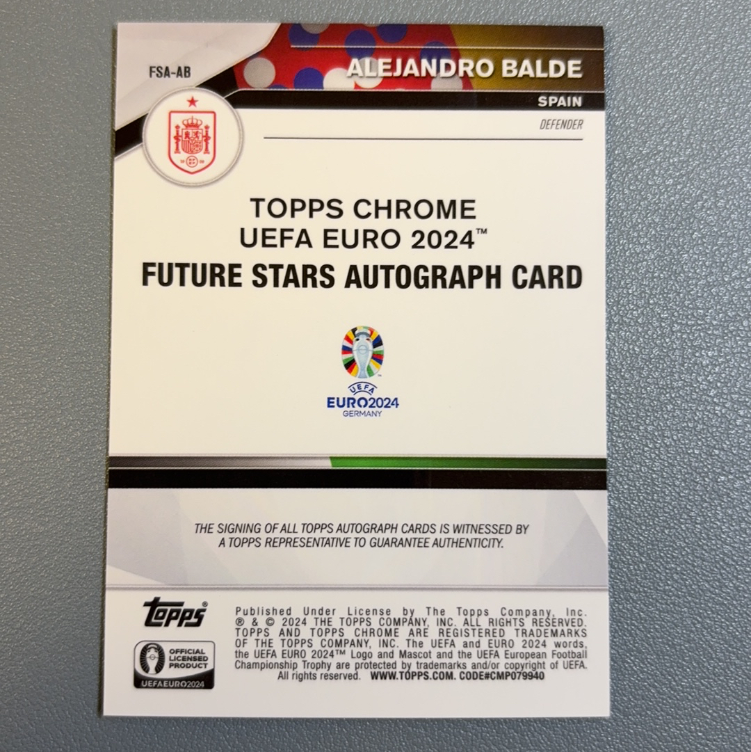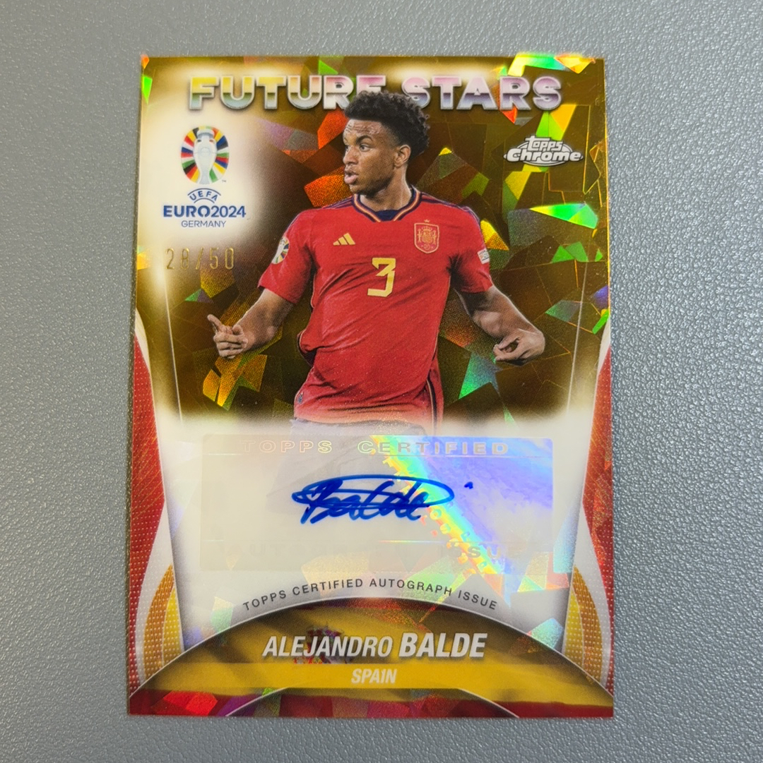 【风速狗】2024 Topps Chrome 元年 欧洲杯蓝宝石 西班牙 BALDE 巴尔德 签字 签名 完美签 28/50编 金碎冰 轻印 路