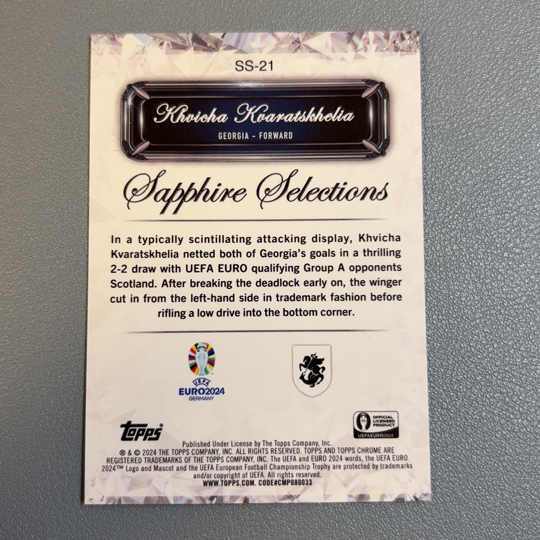 【风速狗】2024 Topps Chrome 元年 欧洲杯蓝宝石 克瓦拉茨赫利亚 Khvicha Kvaratskhelia k77  那不勒斯 巴黎 精选 大比例 蓝碎冰 路