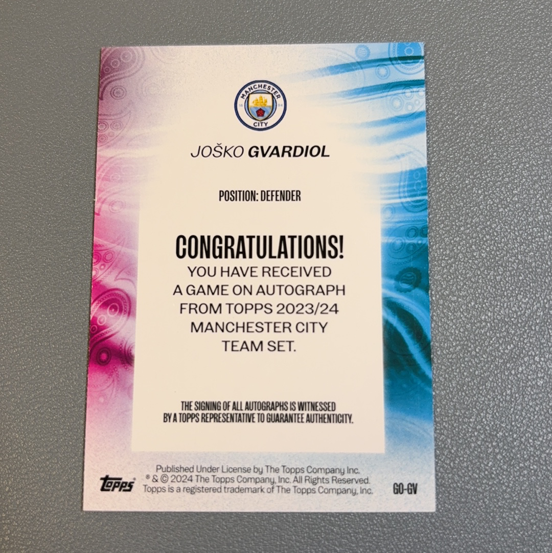 【风速狗】2024 topps 曼城队盒 MANCHESTER CITY 曼城 Josko Gvardiol 格瓦迪奥尔 签字 签名 陈哥