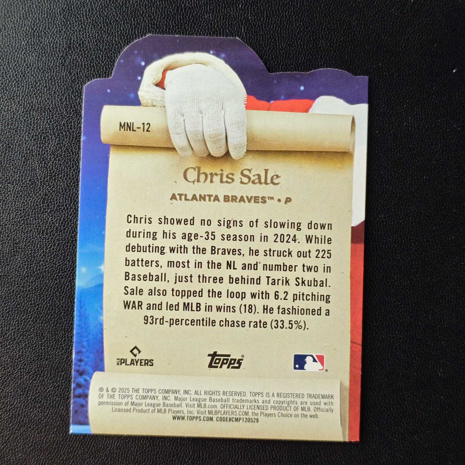 2025 Topps Holiday Chris Sale 棒球 圣诞节 假日限定 银折 克里斯 塞尔 225次三振 The Nice List 异形特卡(J)【JS卡牌潮玩】(卡品如图)