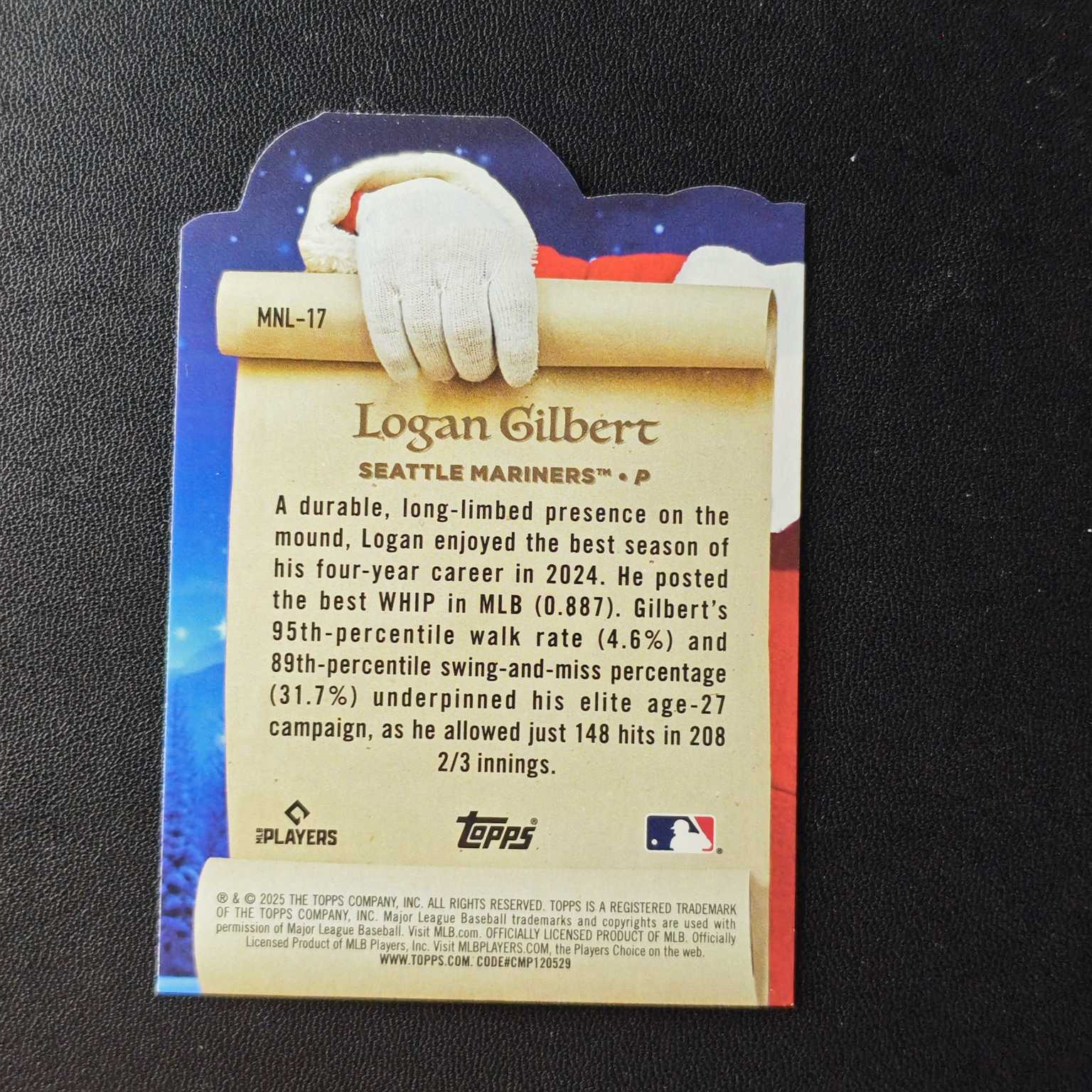 2025 Topps Holiday Logan Gilbert 棒球 圣诞节 假日限定 银折 洛根 吉尔伯特 被上垒率0.89 The Nice List 异形特卡(J)【JS卡牌潮玩】(卡品如图)