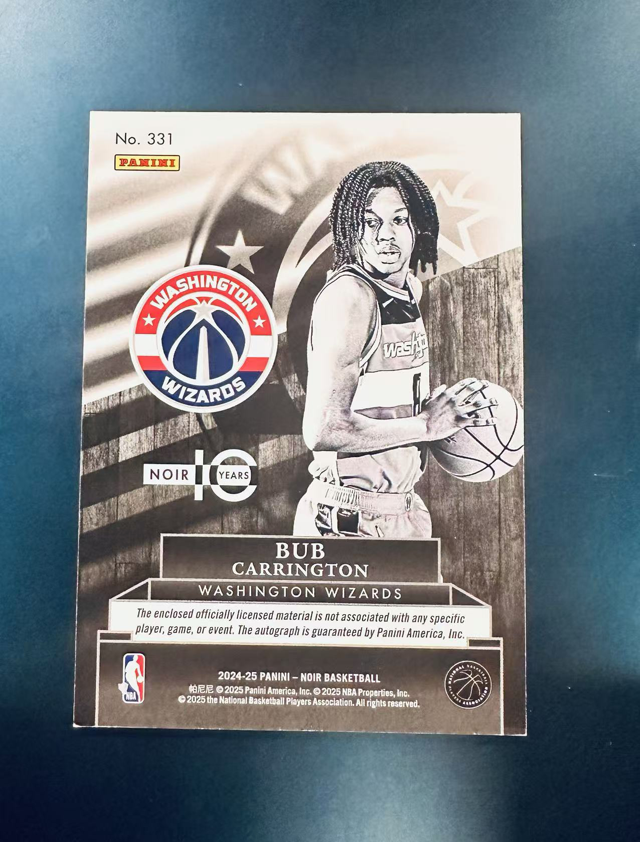 2024-25 Panini Noir Bob Carrington RC 奇才队 鲍勃 卡灵顿 卡林顿 99编 rpa 签字 小窗球衣实物签字 三色patch 卡签