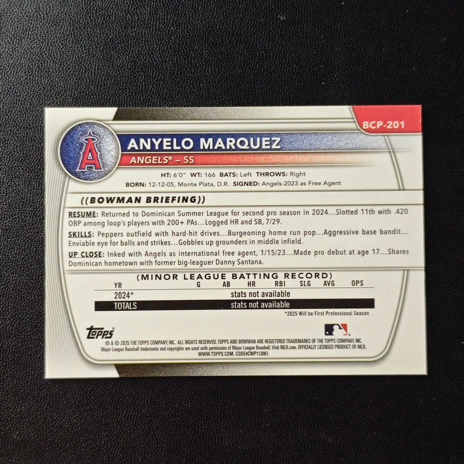 2025 Topps Bowman Chrome Anyelo Marquez RC 新秀 1st 50编 金折 安耶罗 马奎兹 洛杉矶天使(阿火)【JS卡牌潮玩】(卡品如图)