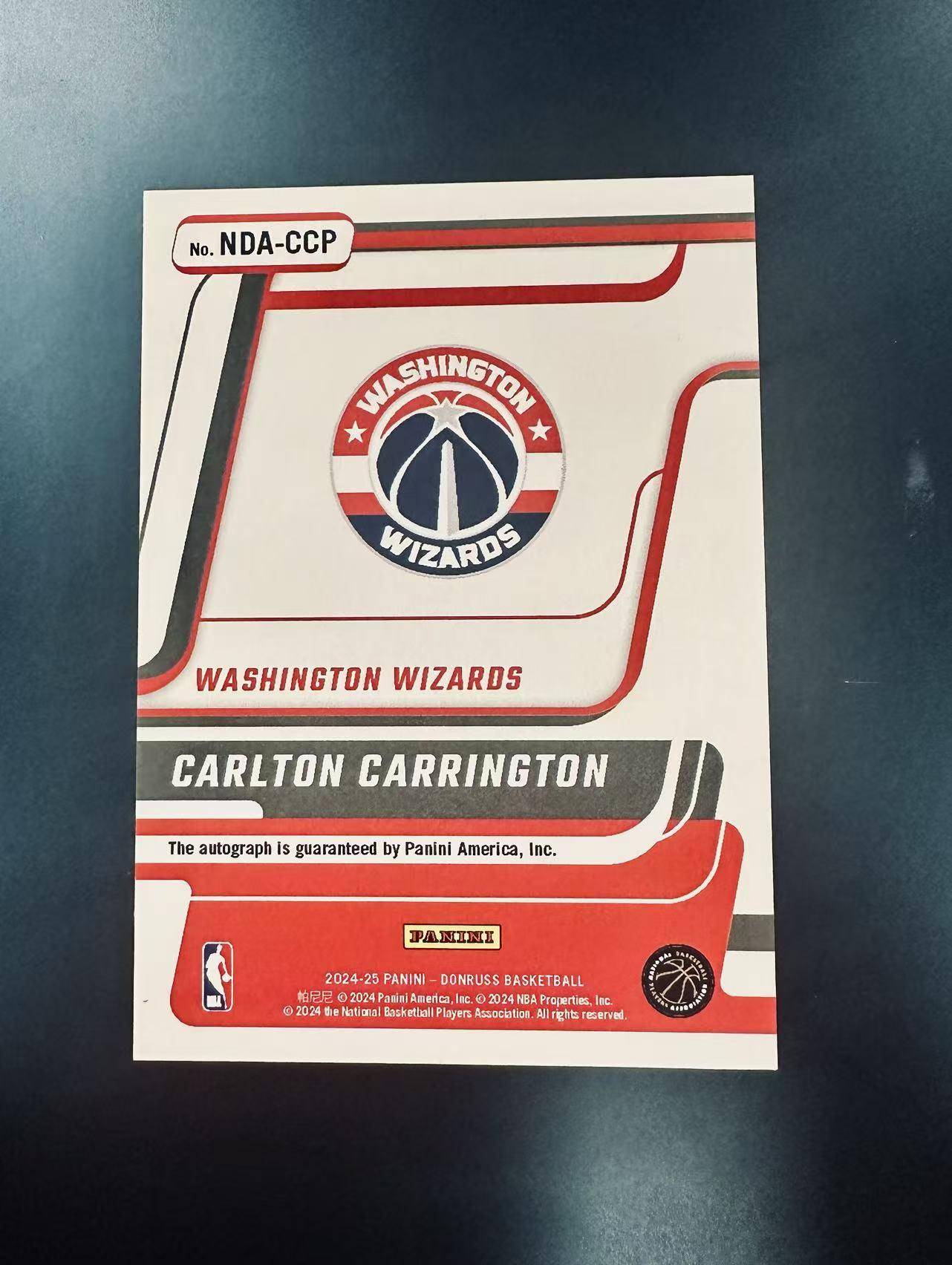 2024-25 Panini Donruss Carlton Carrington 卡尔顿 卡林顿 Next Day 奇才 新秀 RC 明日签 签字 卡签 墨迹如图
