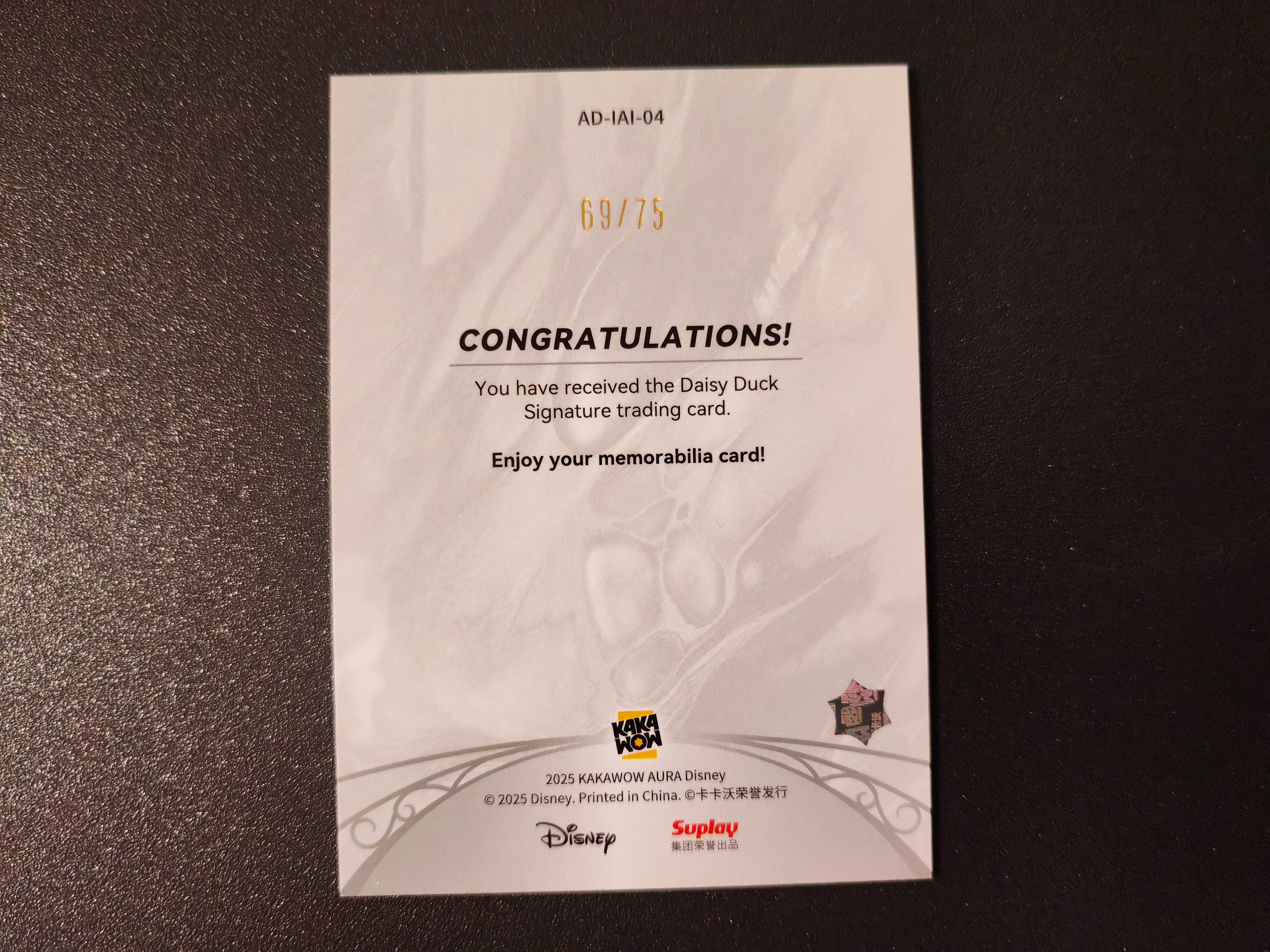 2025 Kakawow AURA Disney daisy duck 卡卡沃 迪士尼【超级稀有已绝版】 黛丝鸭 69/75编 黑折 签字 印签 黑签 金笔印签 卡品如图 默认官瑕!