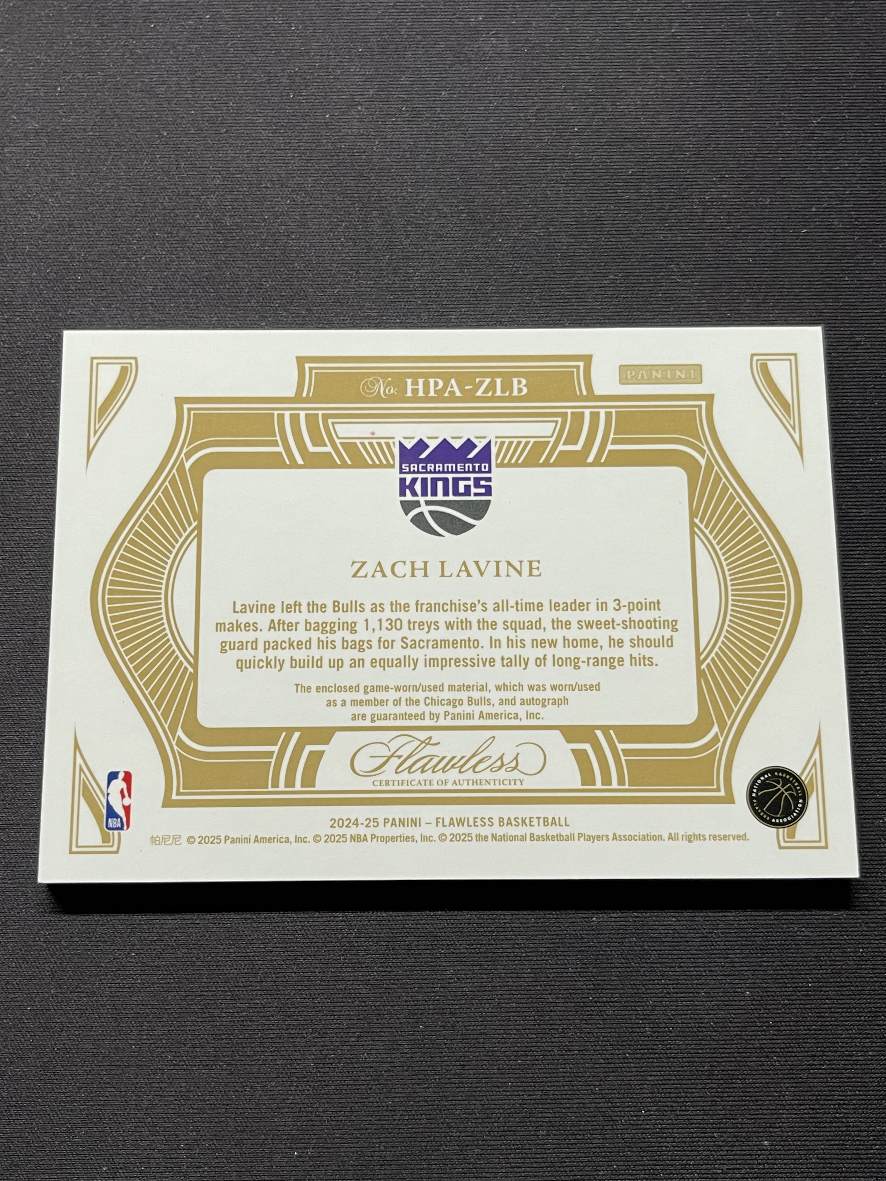 2024-25 Panini Flawless Zach LaVine 手提 国王 扎克拉文 patch 签字卡签 PA HPA 12/15编 红版 不累计「老夫子」阿宾