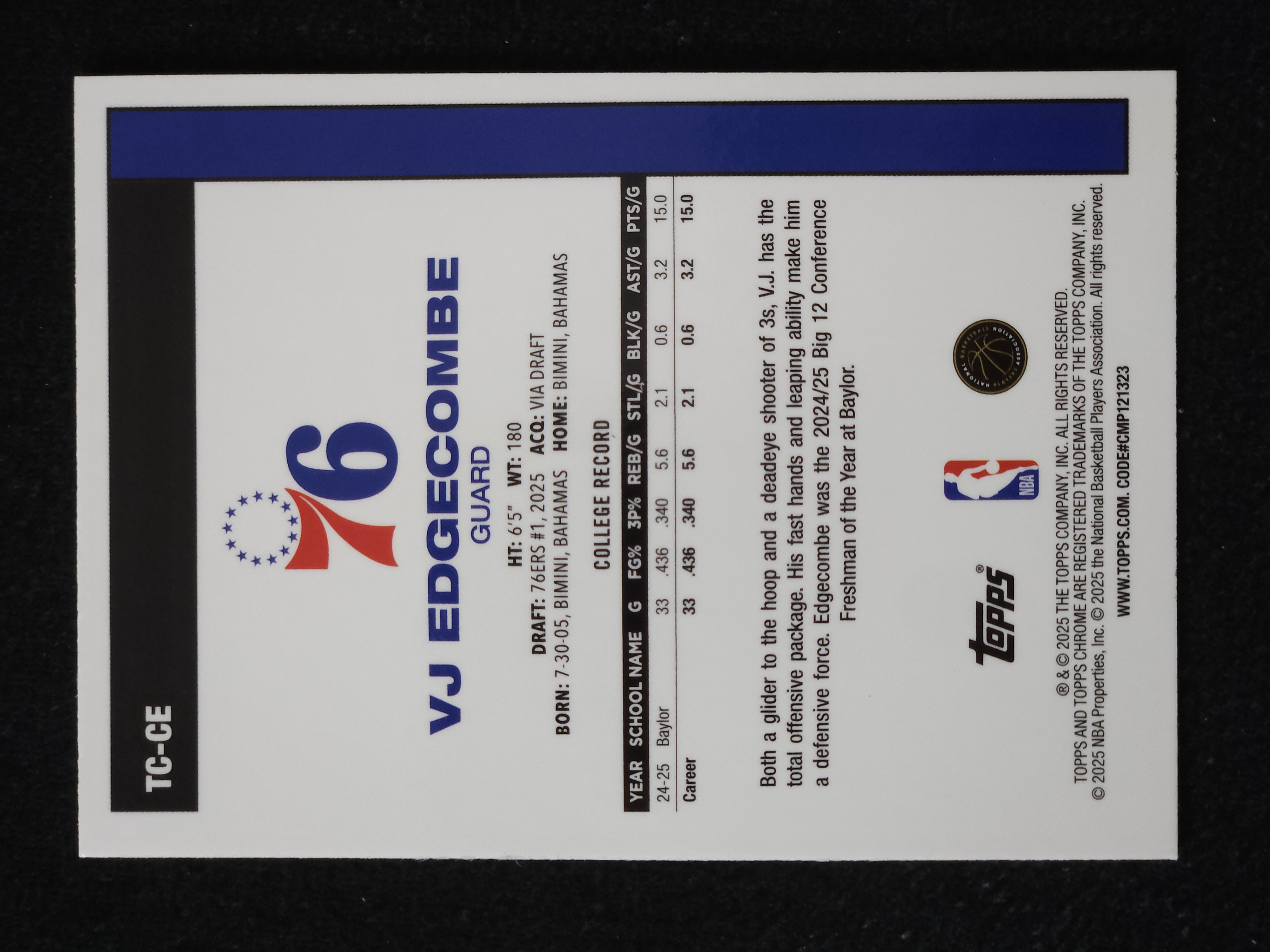 2025-26 Topps Flagship VJ Edgecombe RC 【流星代拍】旗舰 chrome TC 新秀 埃奇库姆 复古 mojo折 天赋后卫 76人 卡品如图 帅比 B