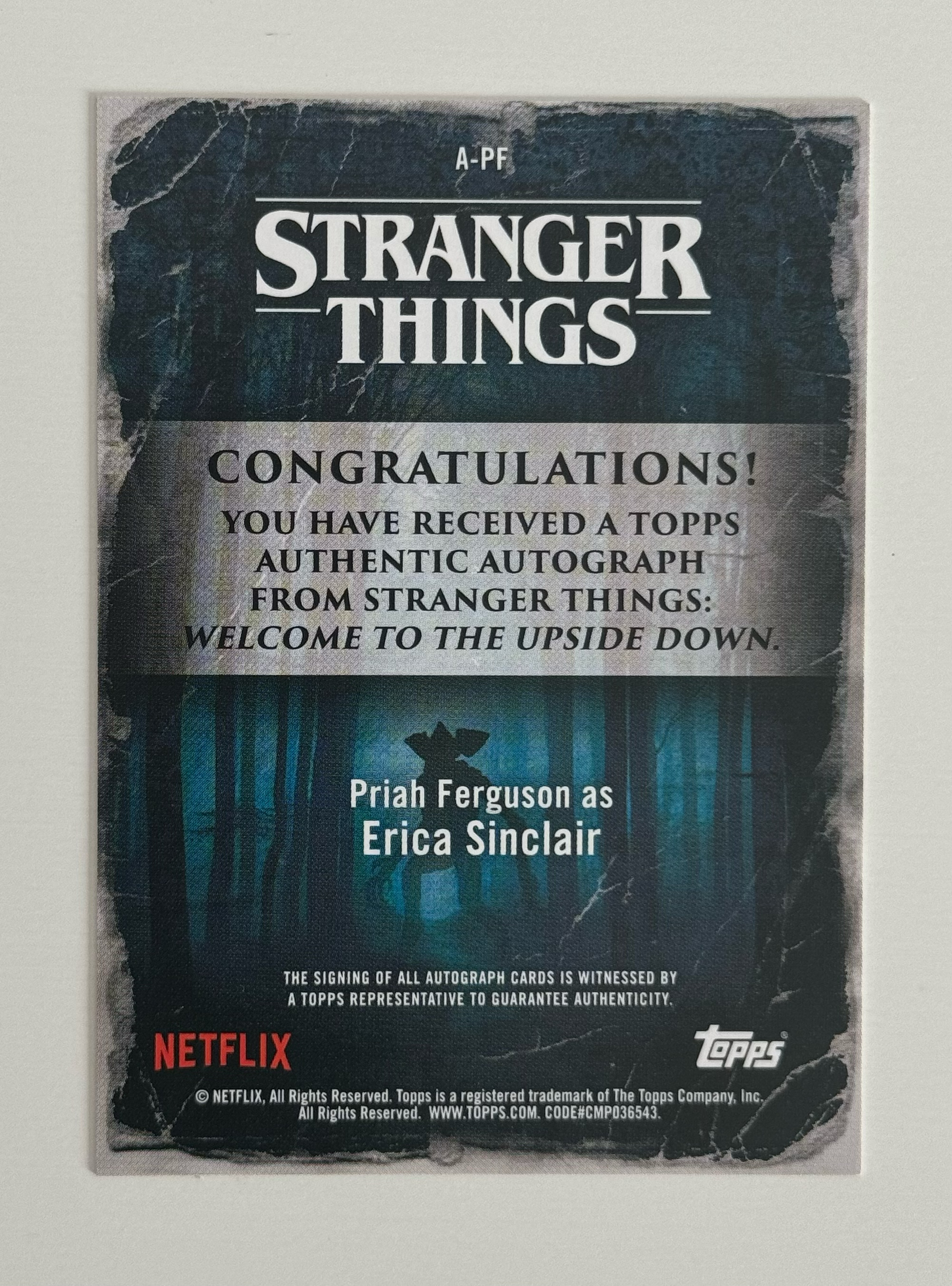 2019 Topps Stranger Things 普利雅·弗格森 吐槽妹 怪奇物语 颠倒的世界 颠倒世界 演员签字 卡签 大比例