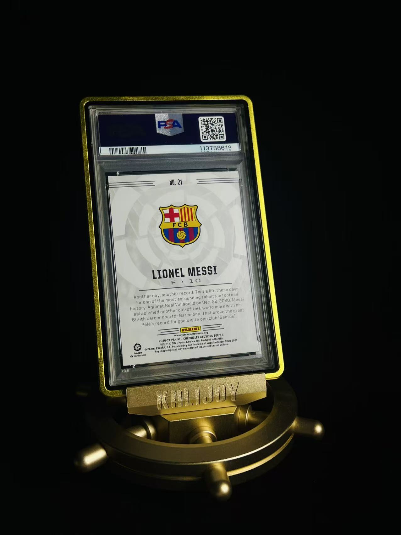 2020-21 Panini Chronicles 编年史 Illusions幻想 巴萨Lionel Messi 里奥梅西 Gold Lasers 金激光折镭射折金佛光折射PSA评级卡 SSP超大比例