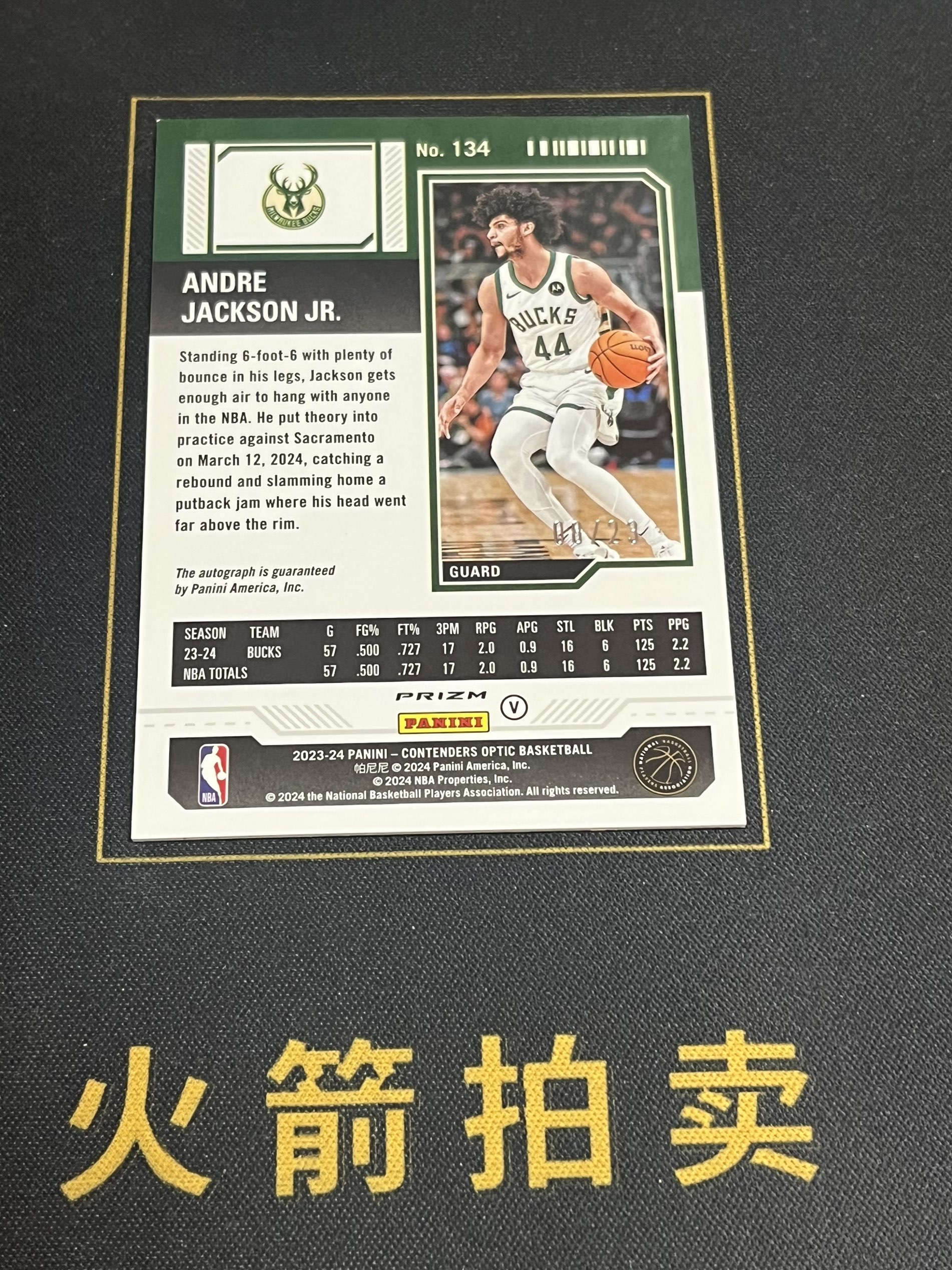 【火箭拍卖 截标预付82%】2023-24 panini Contenders optic andre jackson jr 球票 雄鹿 小安德烈 杰克逊 新秀 rc 银碎冰折 折射 签字 卡签 变化版 8/23编「营收」1117F02祺