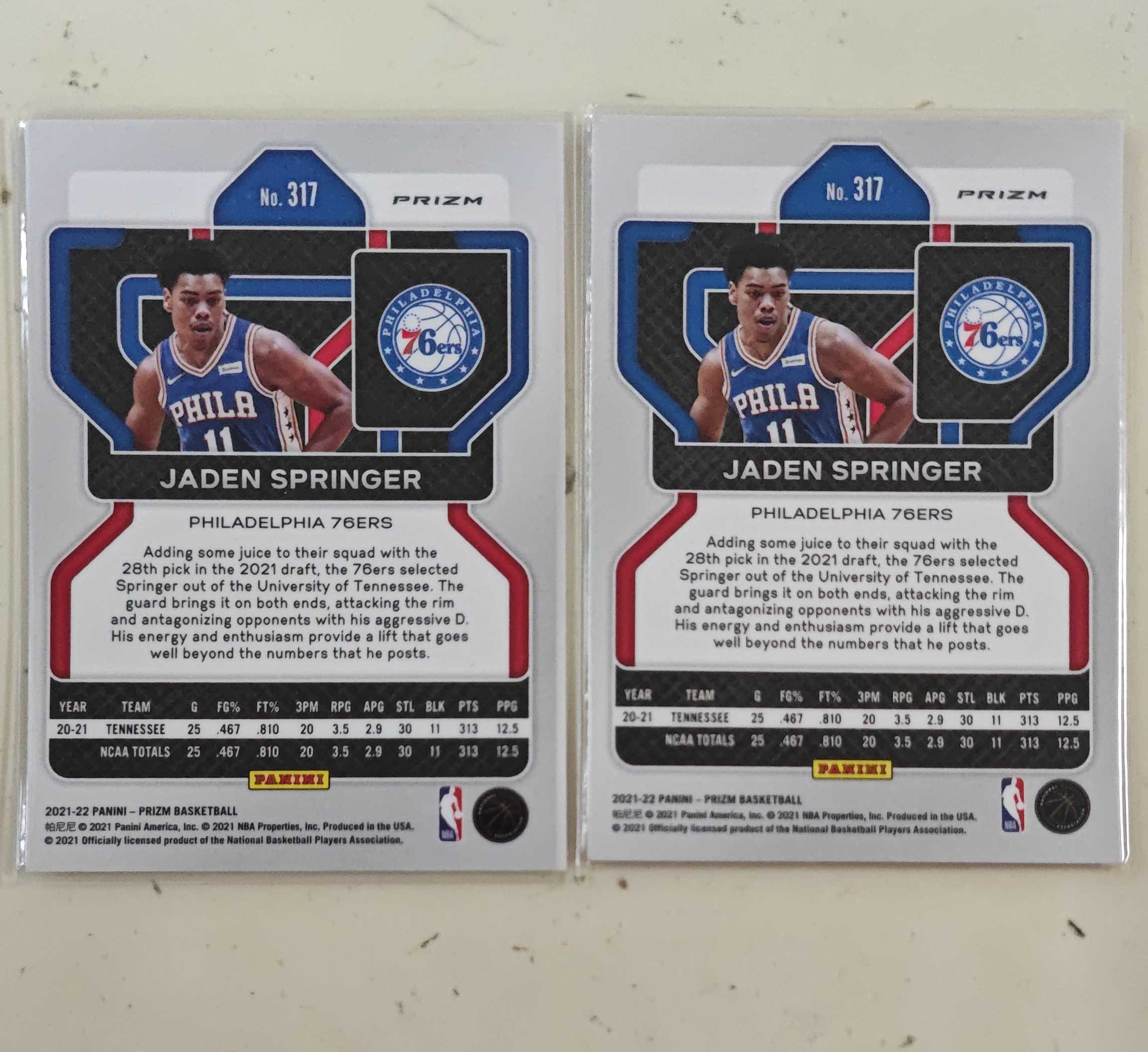 2021-22 Panini Prizm Jaden Springer RC 杰登 斯普林格 pz 新秀 红碎冰 白碎冰 折射 正base 76人 2张lot 不保卡品 凑套必备