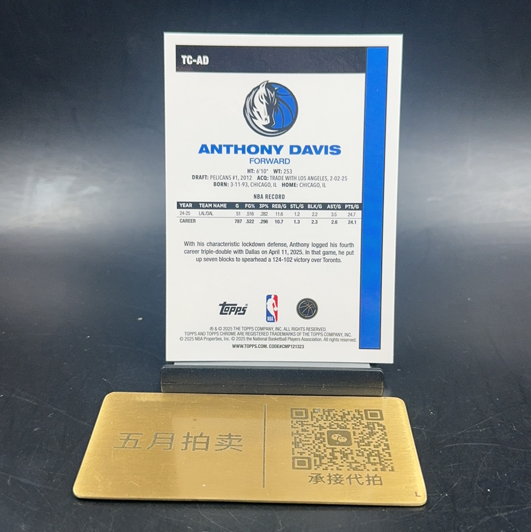 2025 Topps Basketball Anthony Davis 【五月拍卖 顺丰空运】tc 独行侠 安东尼 戴维斯 浓眉 青mojo折 折射 199编 1980复古特卡 卡品如图 月亮t82