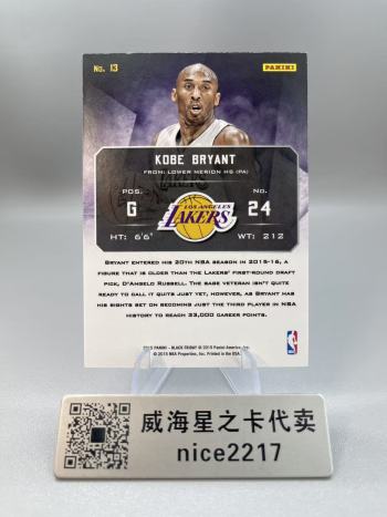 卡品:劳烦仔细看图!!!截标之前可找客服寻要细节照片或者细节视频,一旦出价默认接受卡品(不接受一系列没拍特写,自己没看仔细不想要等理由退换货)截标后不提供任何细节图!如无图片特殊展示瑕疵均为通行品相,一般prizm optic 等系列薄卡的小划痕印刷线,镜面有划痕属于正常品相,国宝IMM等系列厚卡的小白边小白角翘角钝角等,都属于通行品相。完美主义者请直接购买PSA10或者公博金标,发货之后不退不换(购卡的买家拆快递的时候也请拍开箱视频以便维护自己的权益)