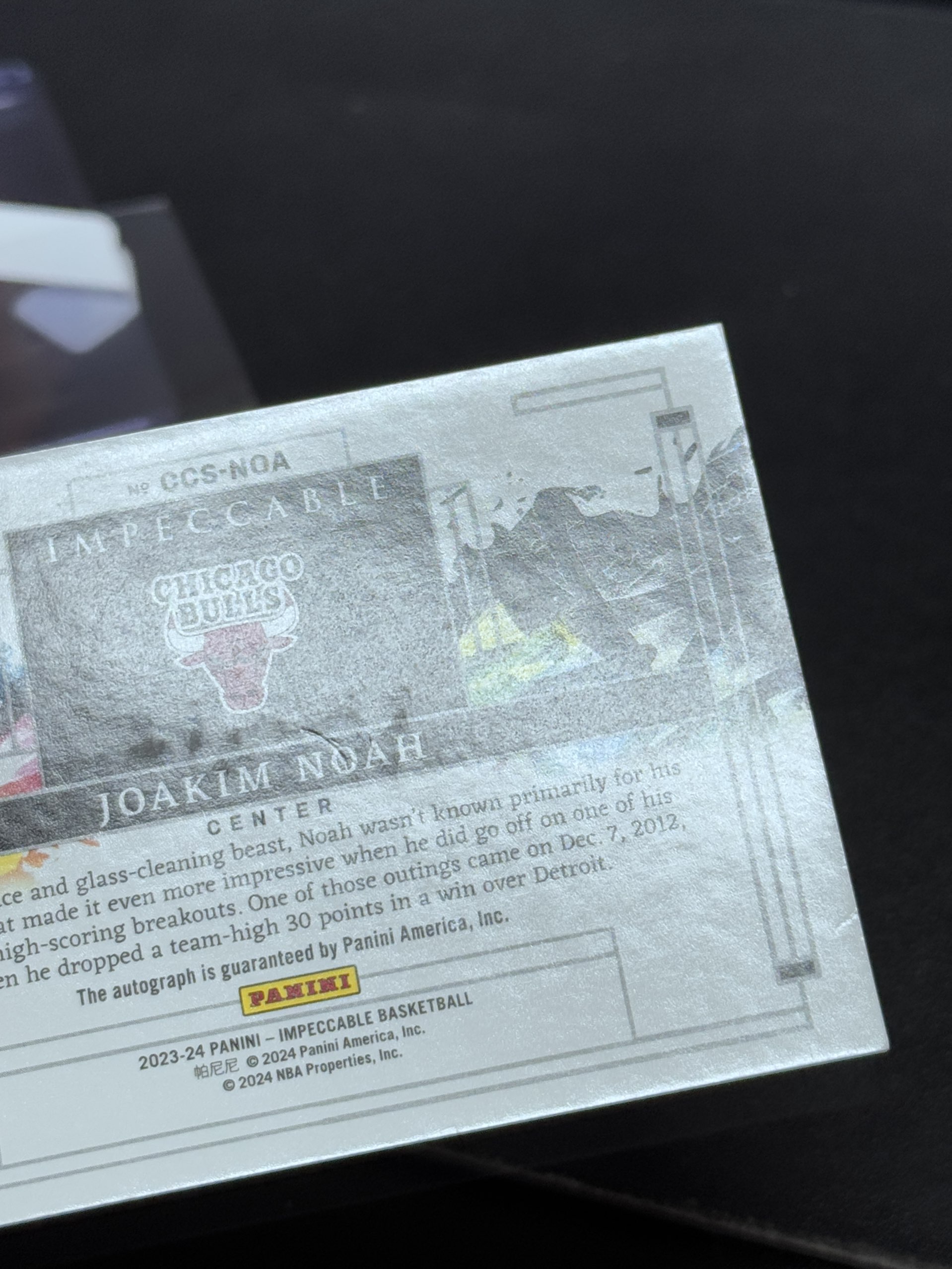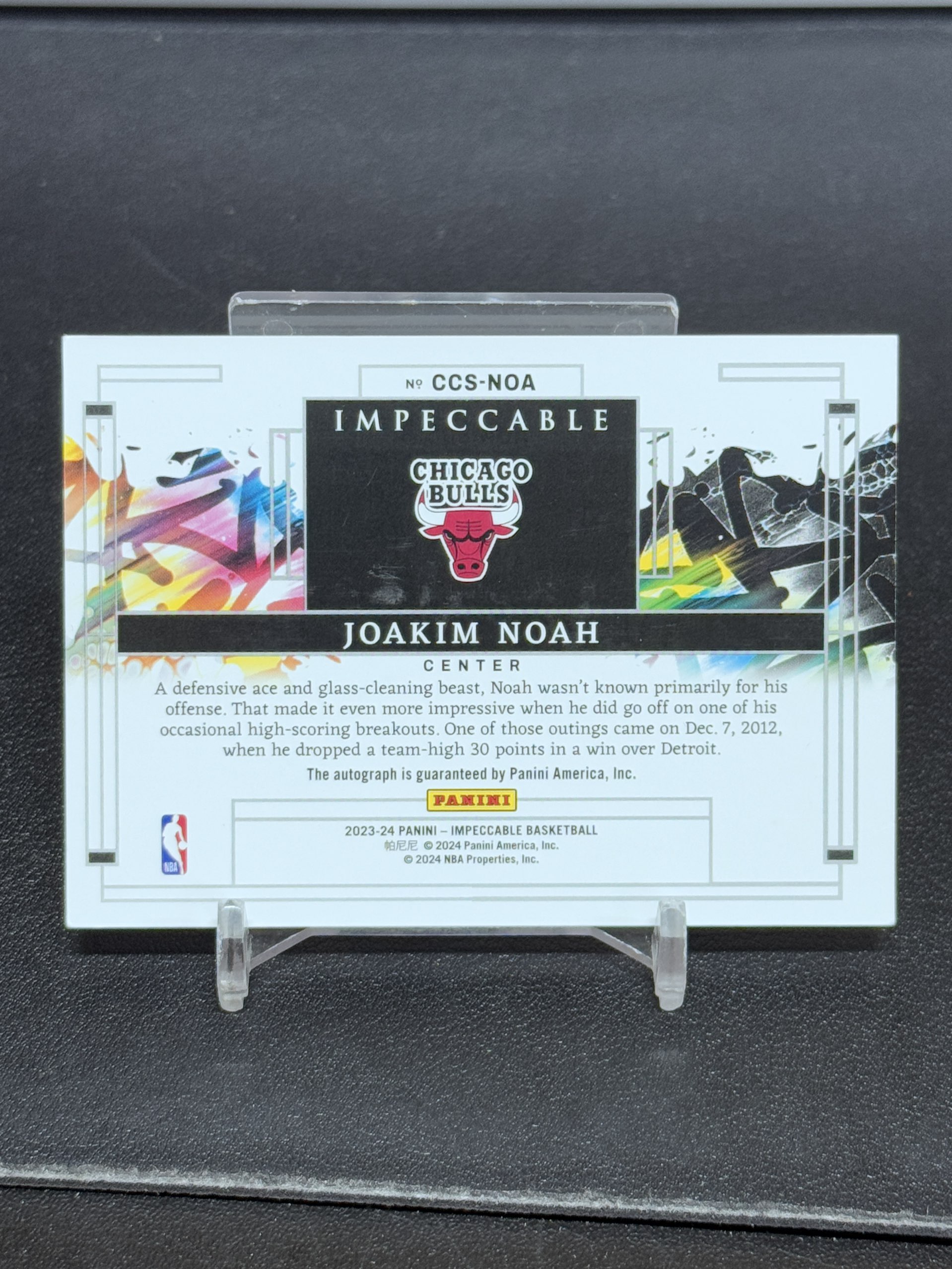 【浩行拍卖 截标预付82%】2023-24 panini impeccable joakim noah 小真金 公牛 乔金 诺阿 签字 卡签 油画 画布签 17/49编 专收必备 瑕疵看图「郁积」1117D05裊