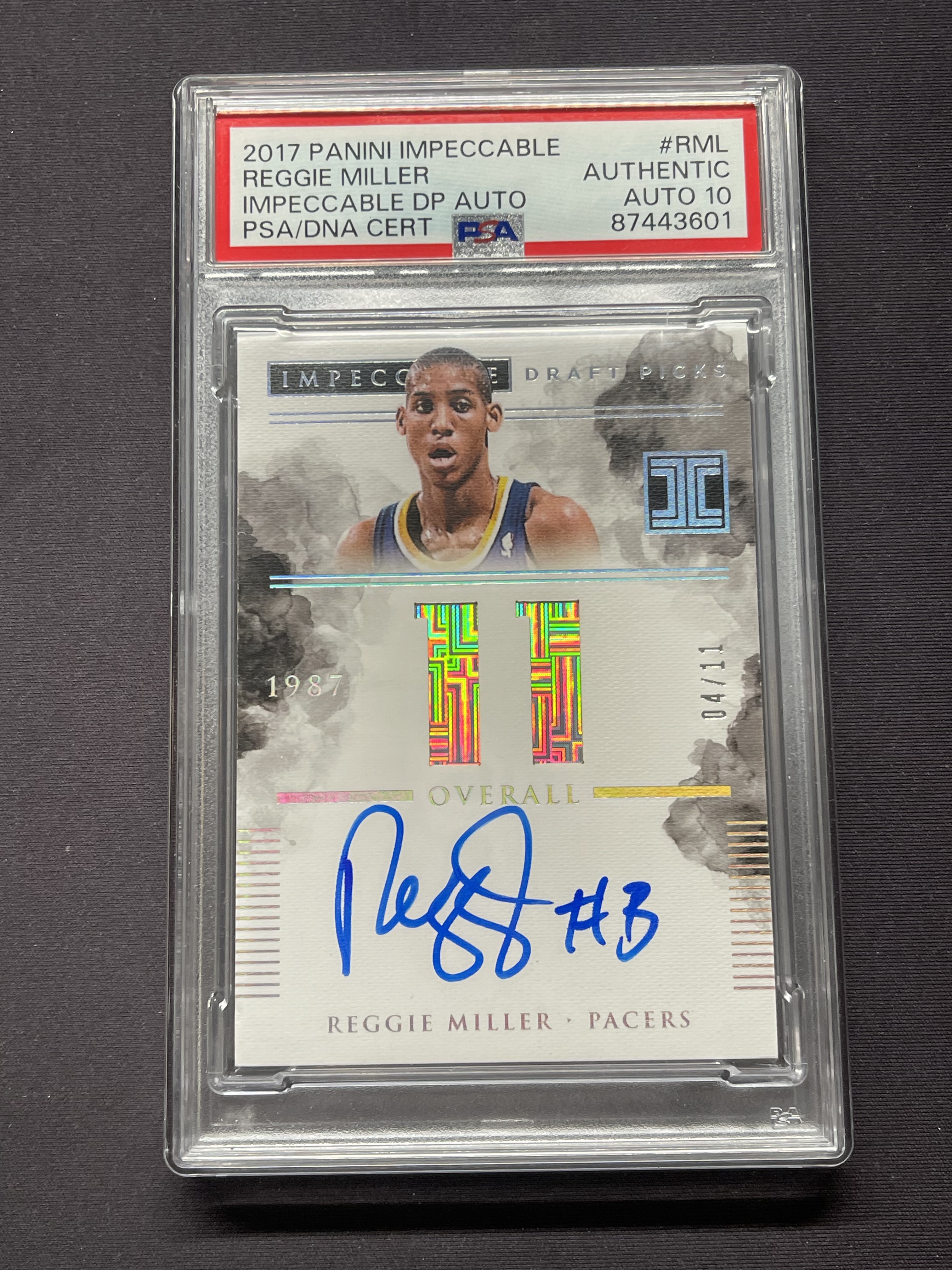 2017-18 Panini Impeccable Reggie Miller 小真金 步行者 雷吉米勒 选秀顺位 数据签 签字卡签 04/11编 PSA Auto10 不累计「老夫子」JS