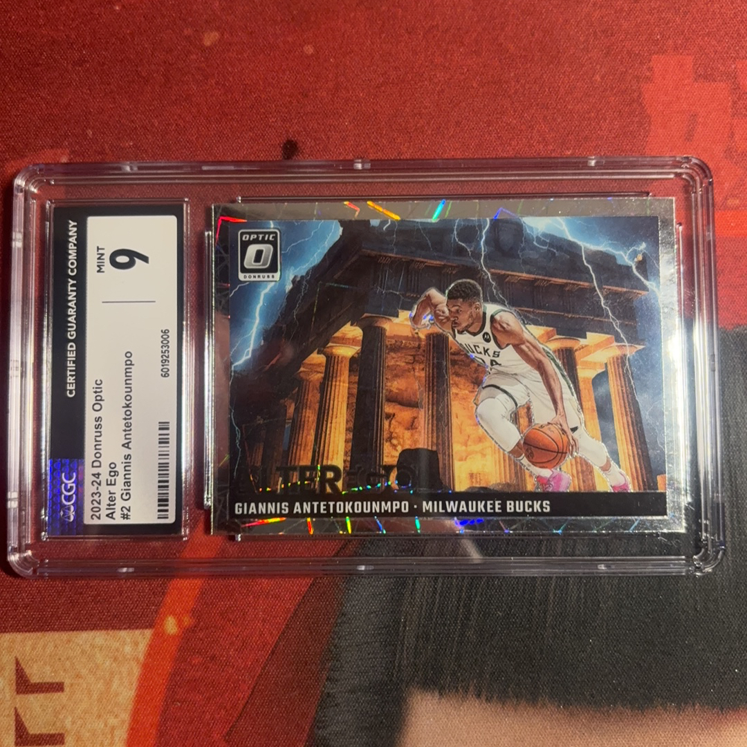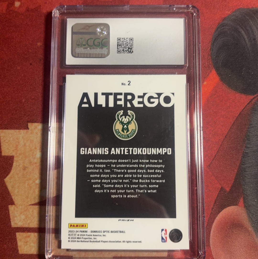 2023-24 Panini donruss Giannis Antetokounmpo 雄鹿队 字母哥 杜蕾斯OP 银镭射 ALTEREGO 绰号 第二自我特卡 超大比例 SSP 评级CGC 9分