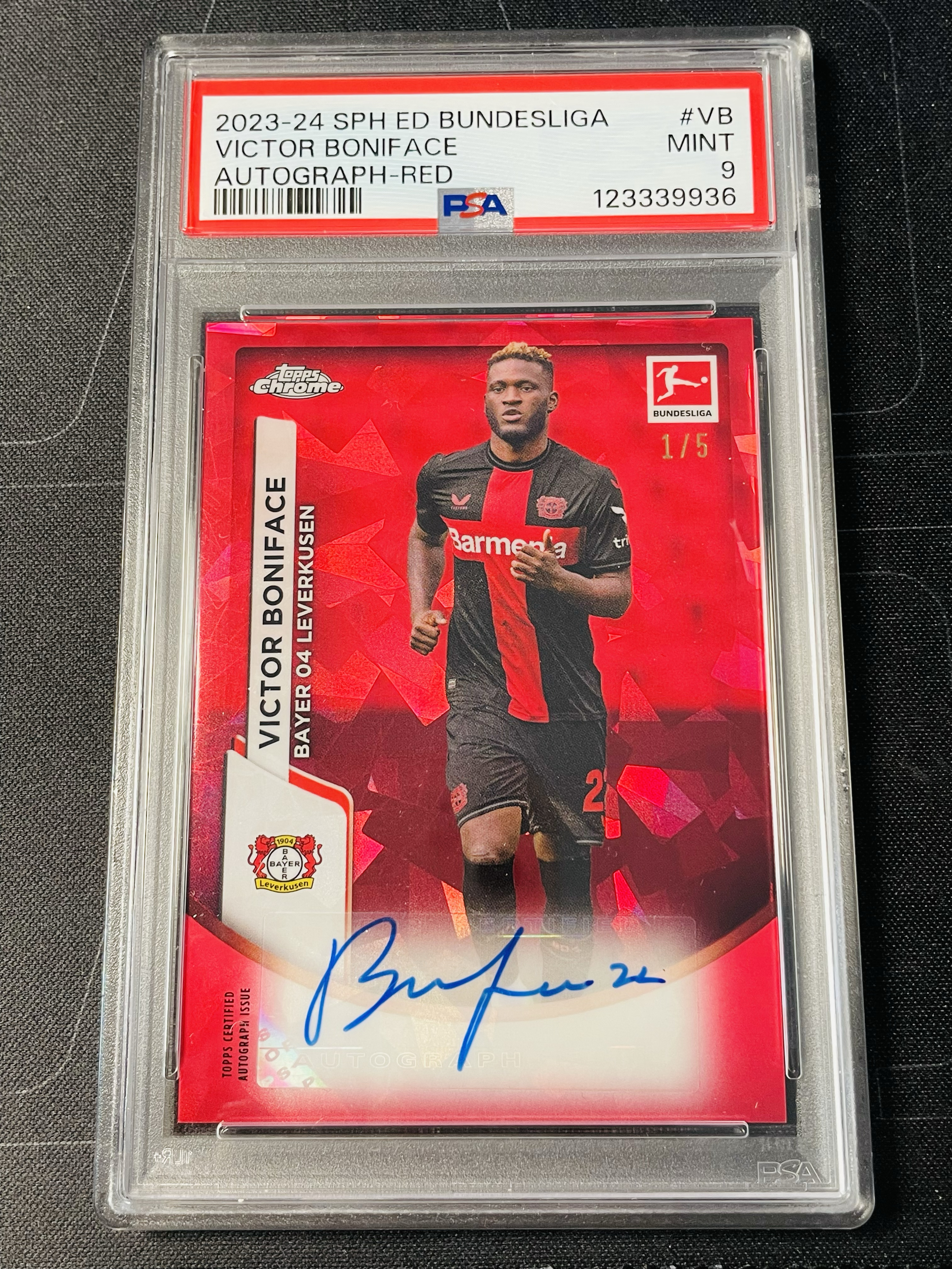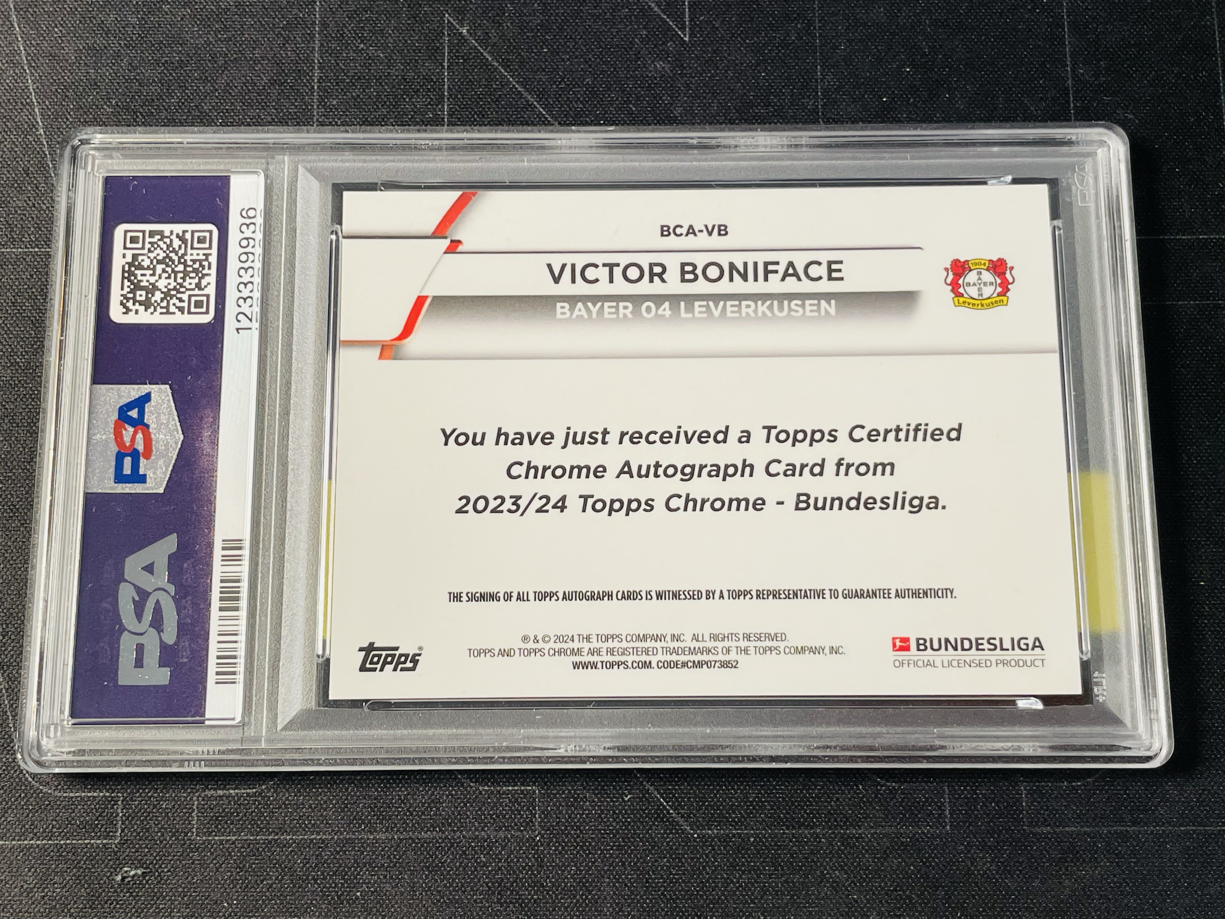 2023-24 Topps Chrome Victor Okoh Boniface 【MJ23足球】德甲TC 博尼费斯 勒沃库森 签字 1/5编 超低首编 红碎冰折 折射 完美墨迹 PSA9评级 J9