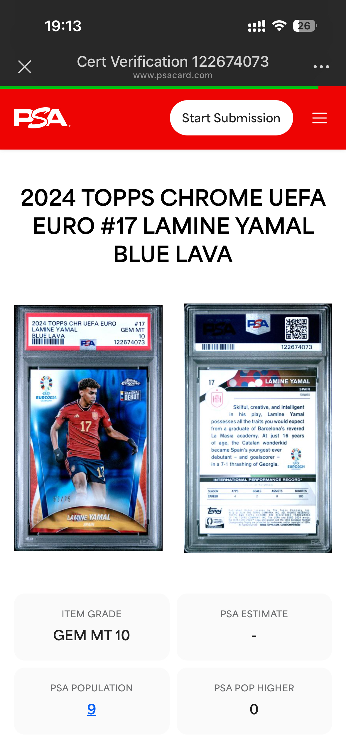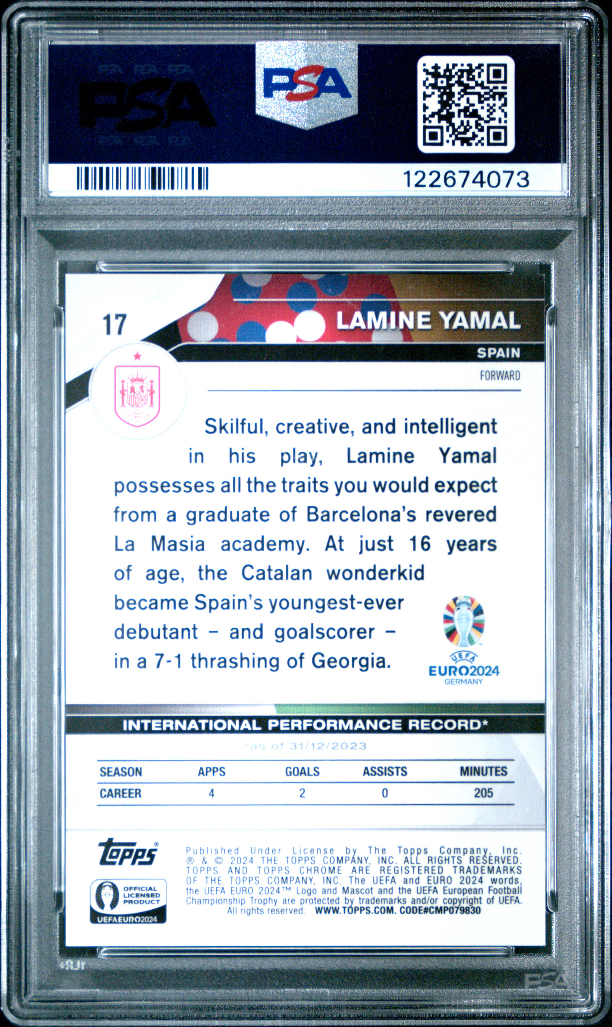 2024 Topps Chrome Lamine Yamal RC EURO 拉明 亚马尔 psa10 仅pop9 西班牙 巴萨 75编 蓝熔岩折 RC新秀 欧洲杯 C罗 梅西 迷弟