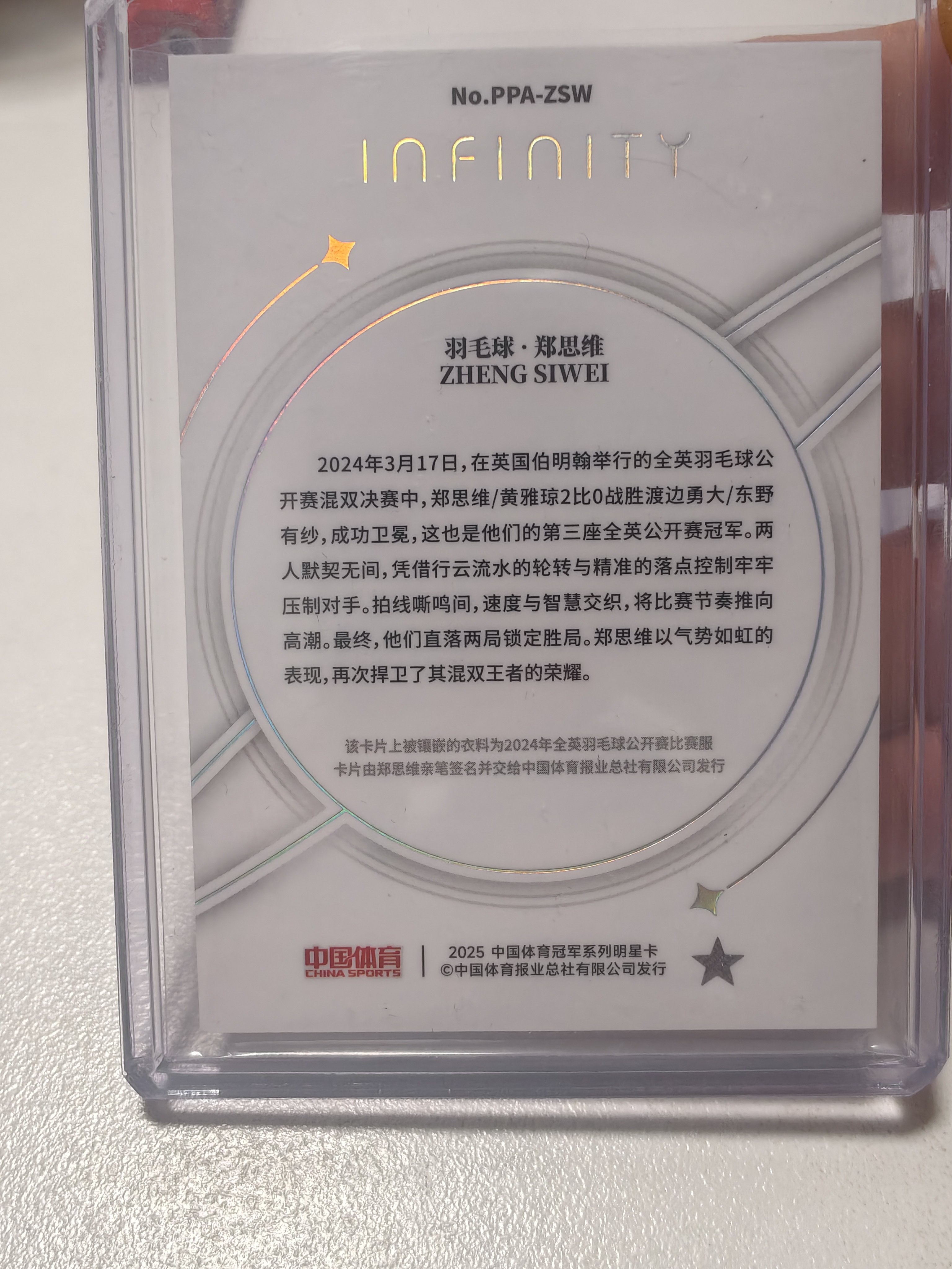 2025 奇卡 QICA 中国体育 无限 郑思维 羽毛球 25编 签字 卡签 行星签字 球衣物料