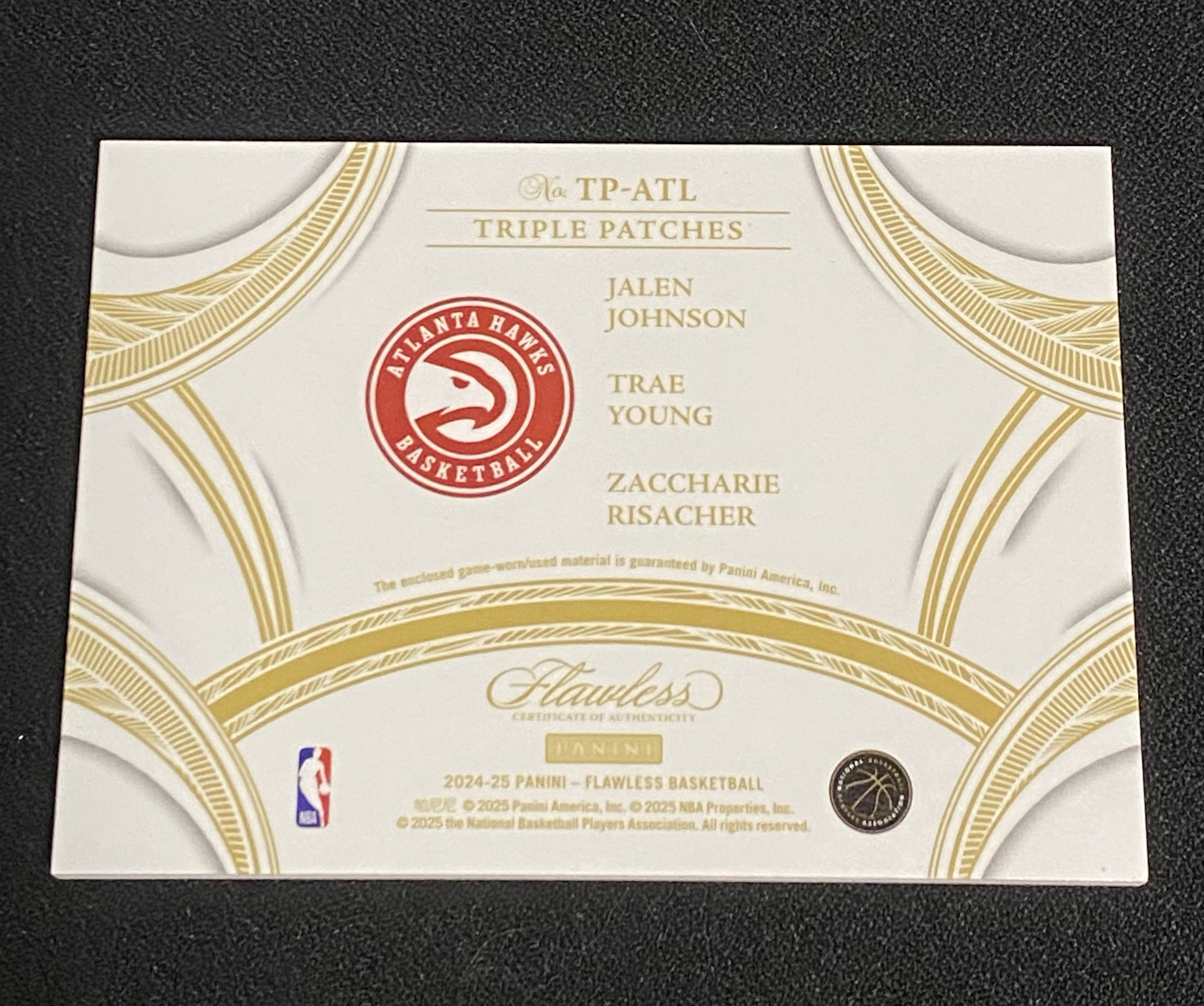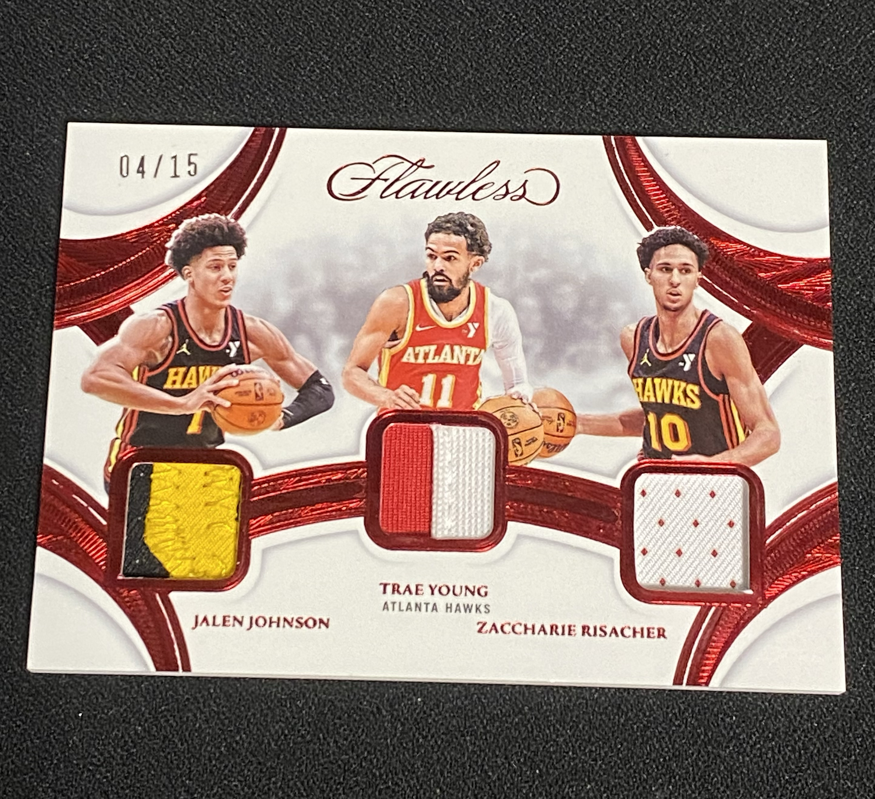 【胡子球手】2024-25 Panini Flawless Trae Young 手提 老鹰 特雷杨 里萨谢 杰伦约翰逊 /15编 红平行 三窗球衣patch jh