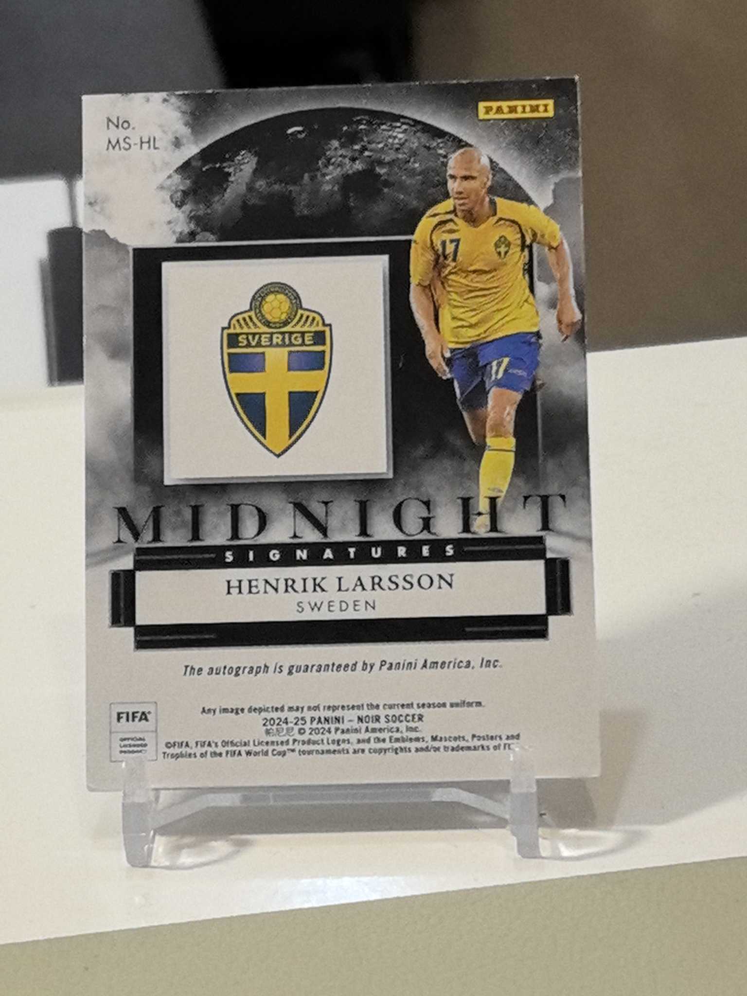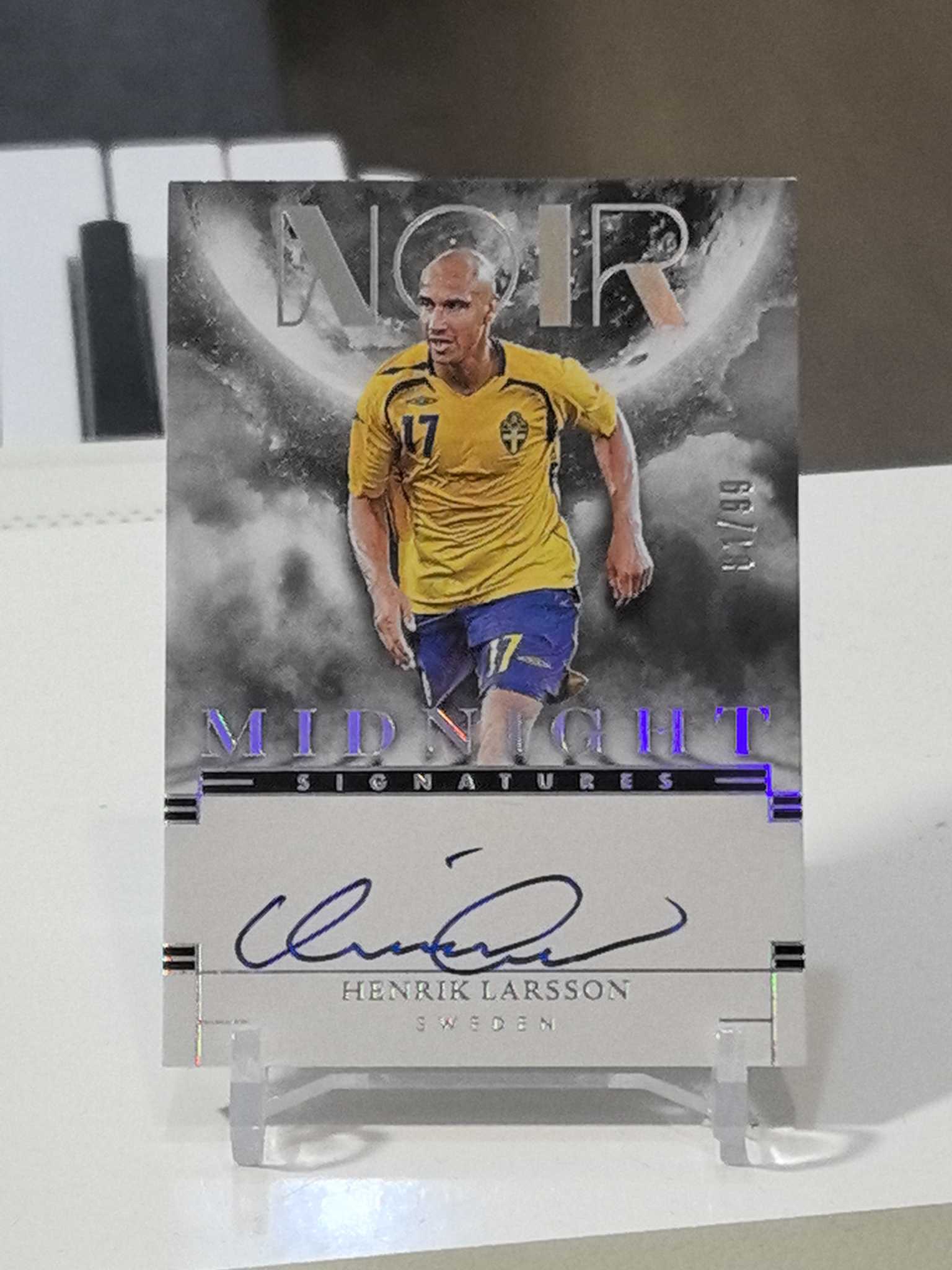 2024-25 Panini Noir Henrik Larsson 【KS拍卖】瑞典传奇前锋 拉尔森/99编午夜卡签,非常漂亮,实卡爆闪