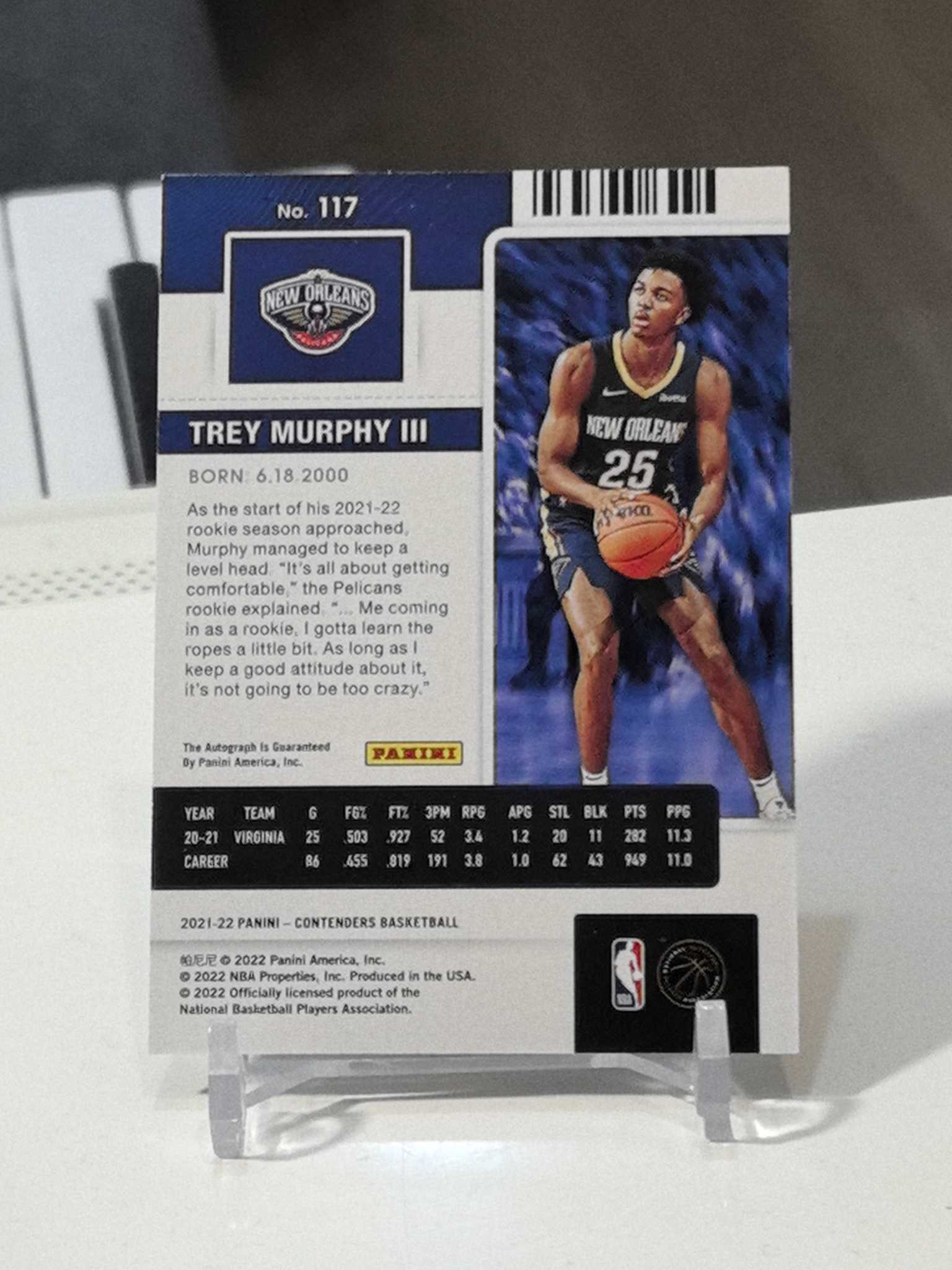 2021-22 Panini Contenders Trey Murphy III RC 【KS拍卖】球票 新奥尔良鹈鹕 潜力新星 特雷墨菲/99编正新秀卡签,非常漂亮,升值潜力巨大