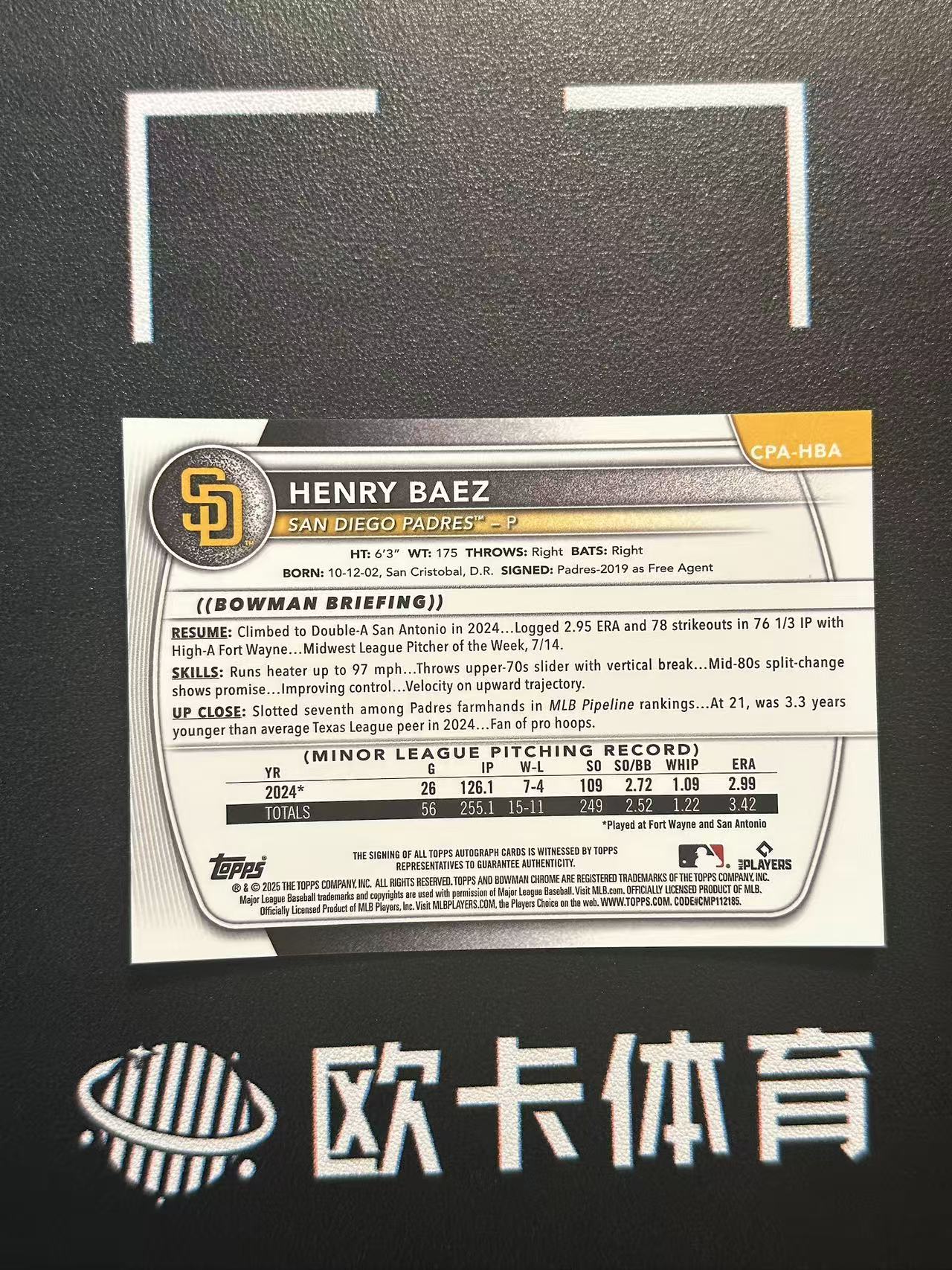 2025 Topps Bowman Chrome Henry Baez 【欧卡体育】鲍曼TC 1st首秀 亨利 贝兹 巴兹 签字 卡签 教士 卡品如图(YDD)