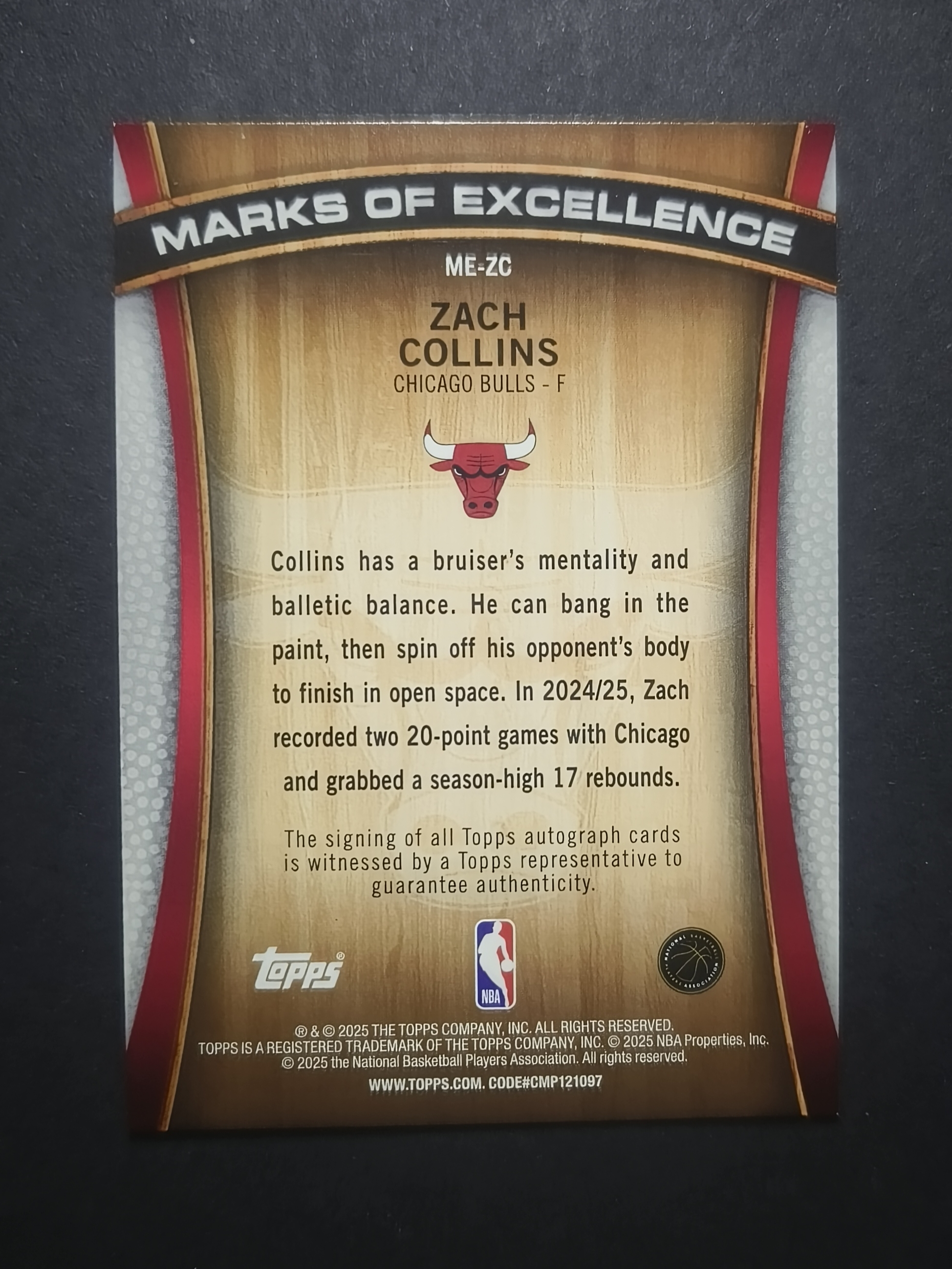 2025 Topps MARKS OF EXCELLENCE Zach Collins 【lge代卖】扎克 科林斯 签字 topps 公牛 地板 可累计三天