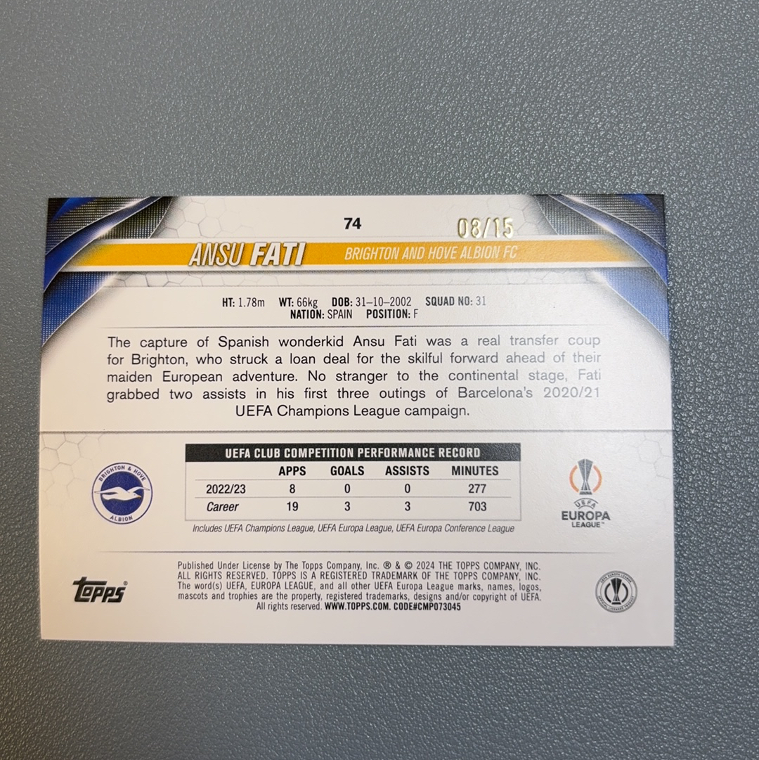 【风速狗】2023-24 topps 龙年碧玉 碧玉折射 紫折 ANSU FATI 安苏法蒂 8/15编 陈哥