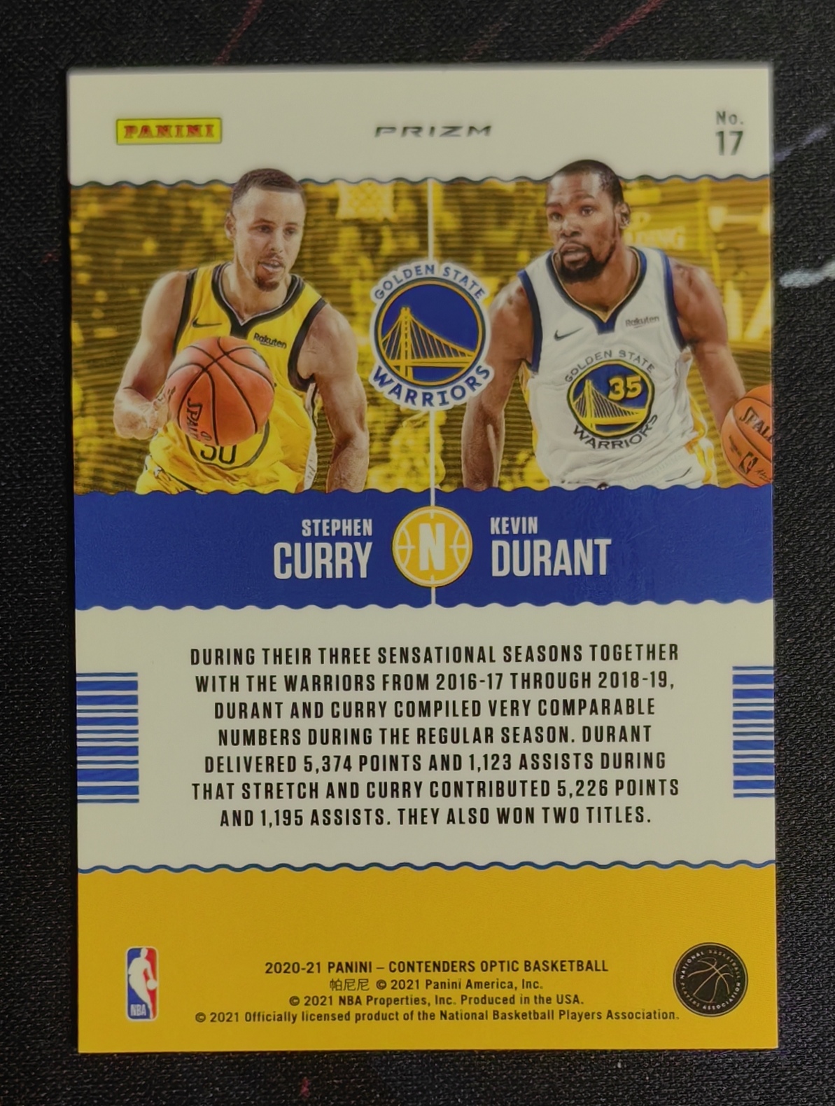 2020-21 Panini Contenders Optic Stephen Curry 勇士 库里 杜兰特 球票 双人特卡 变化版金银折射 MVP超巨(爱妈拍卖)可累计 免费代拍 瑕疵看图