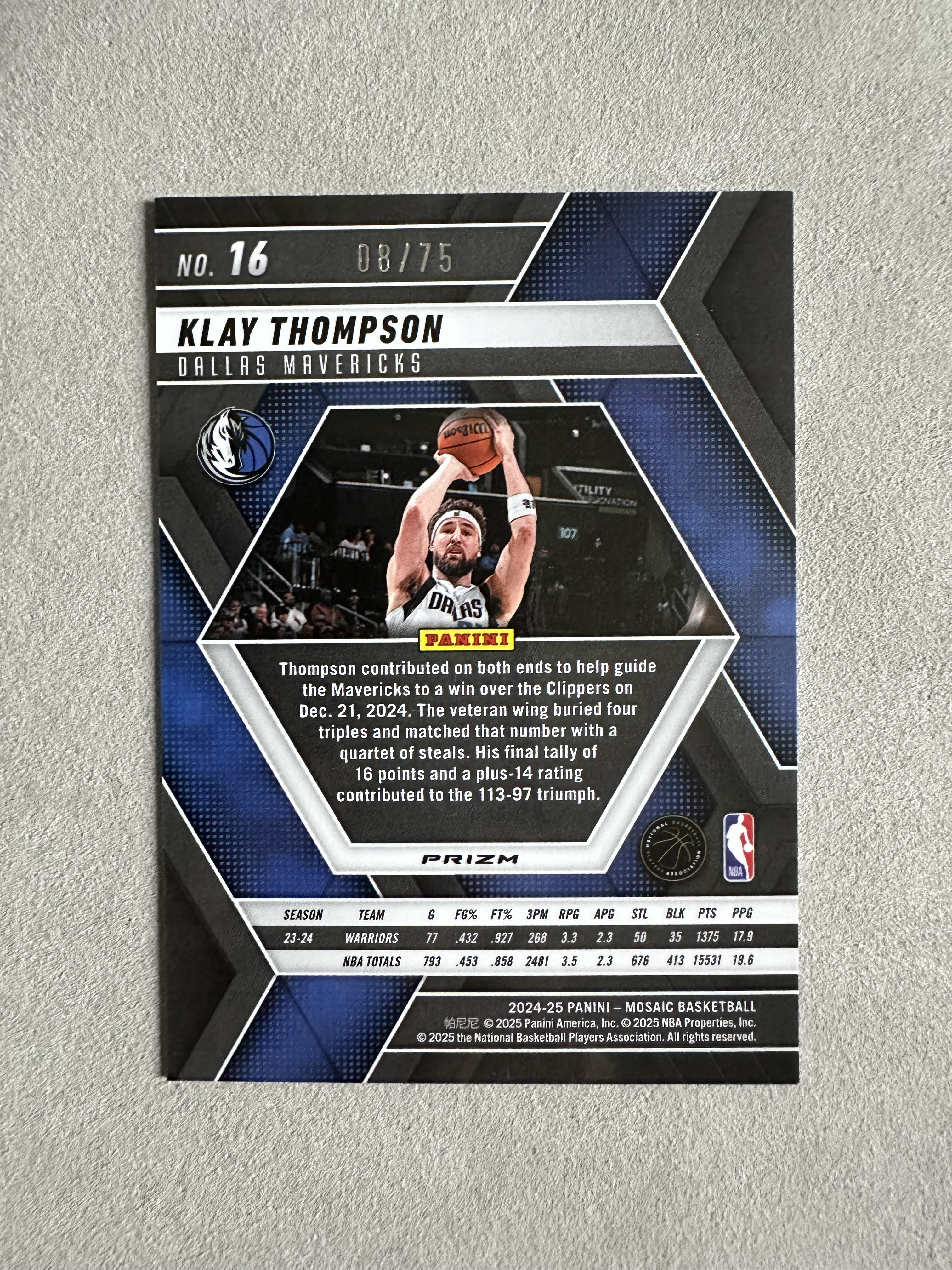 2025 Panini Mosaic Klay Thompson 独行侠队 克莱 汤普森 马赛克折射 75编 红圈圈 卡量稀少 凑套必备(浩哥10)