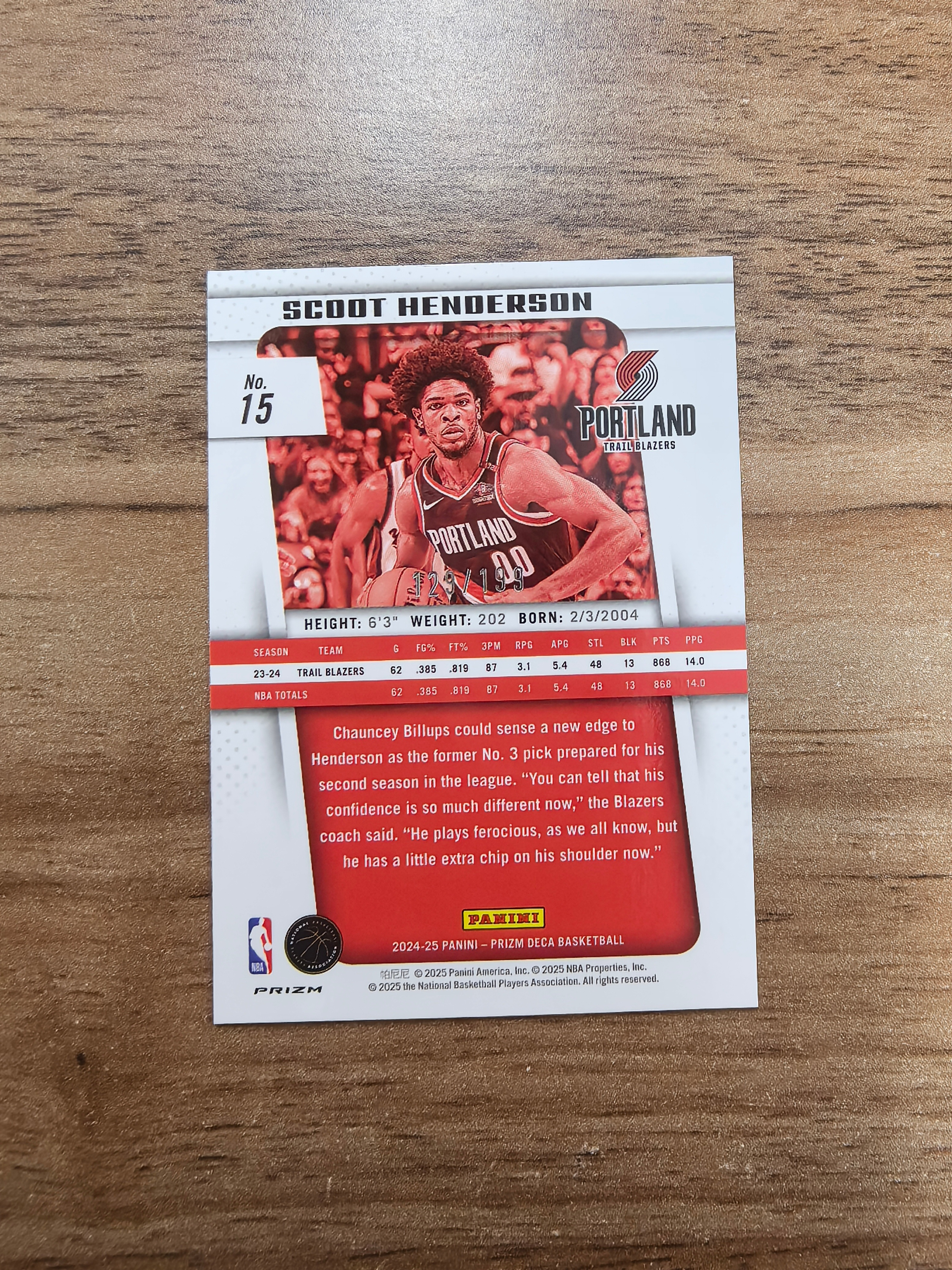 2024-25 Panini PRIZM DECA Scoot Henderson PZ复古 开拓者 斯库特亨德森 129/199编 红折 折射 微瑕 实卡精美 卡品如图 收藏必入 流浪