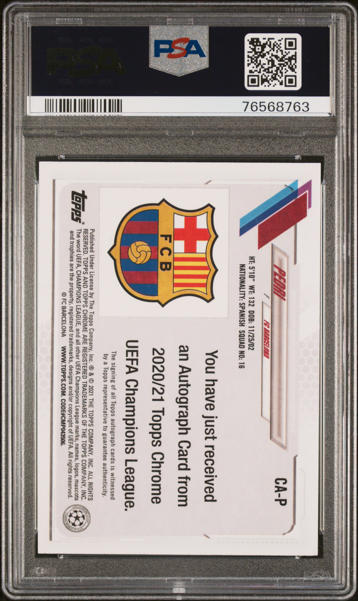 2021 Topps Chrome 巴萨 Pedri 佩德里 签字 贴签 新秀 rc 银折 折射 PSA评级9分签字10分 巴萨 巴塞罗那 西班牙 金童科帕奖 战神无双(czy)