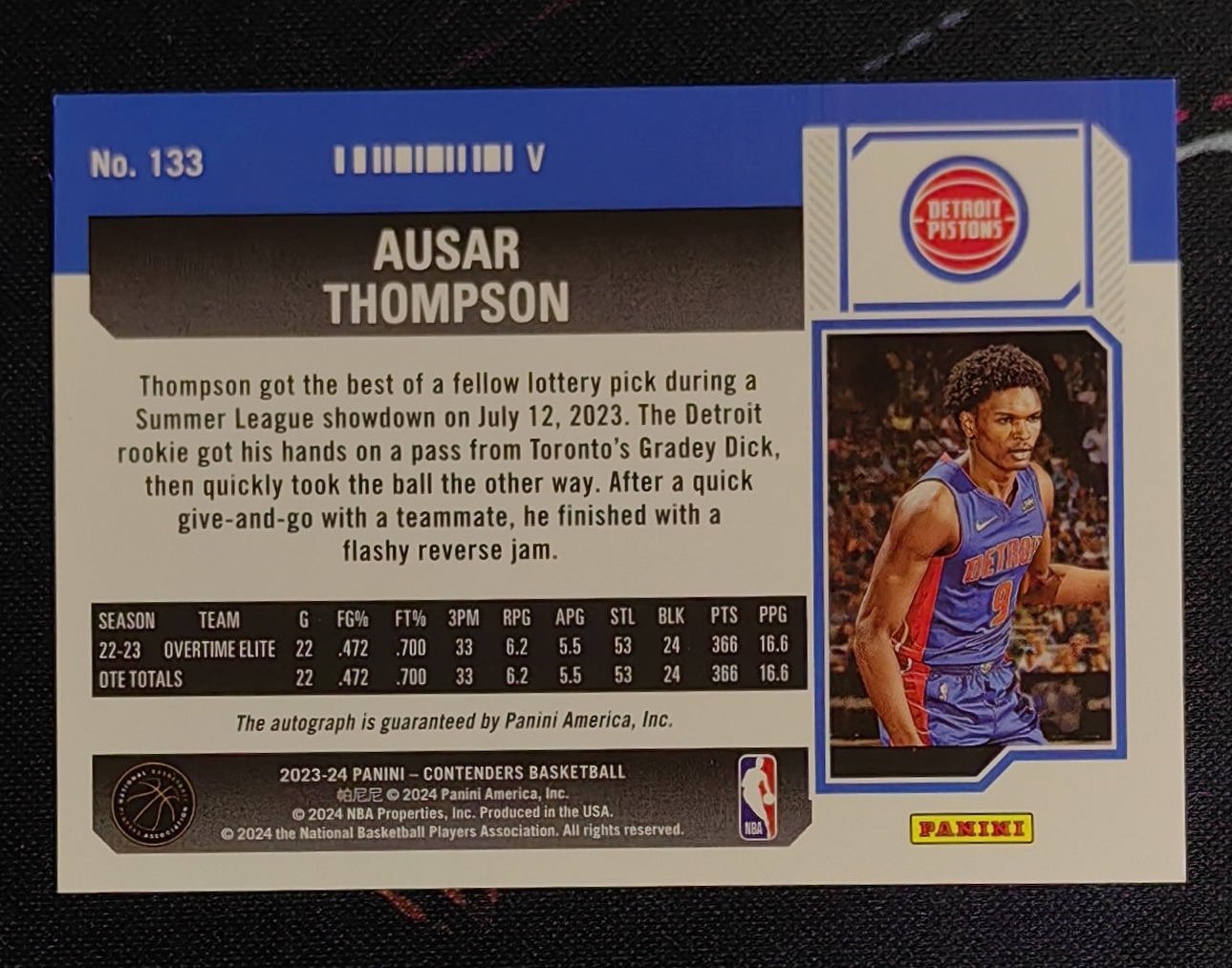 2023-24 Panini Contenders Ausar Thompson RC 活塞 新秀RC 奥萨尔汤普森 球票签字卡签 99编 变化版 潜力新星(爱妈拍卖)可累计 免费代拍 瑕疵看图