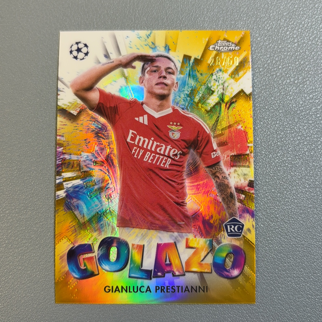 【风速狗】2025 topps Chrome hobby Gianluca Prestianni RC 欧冠TC 普雷斯蒂安尼 本菲卡 新秀 28/50编 金折 陈哥
