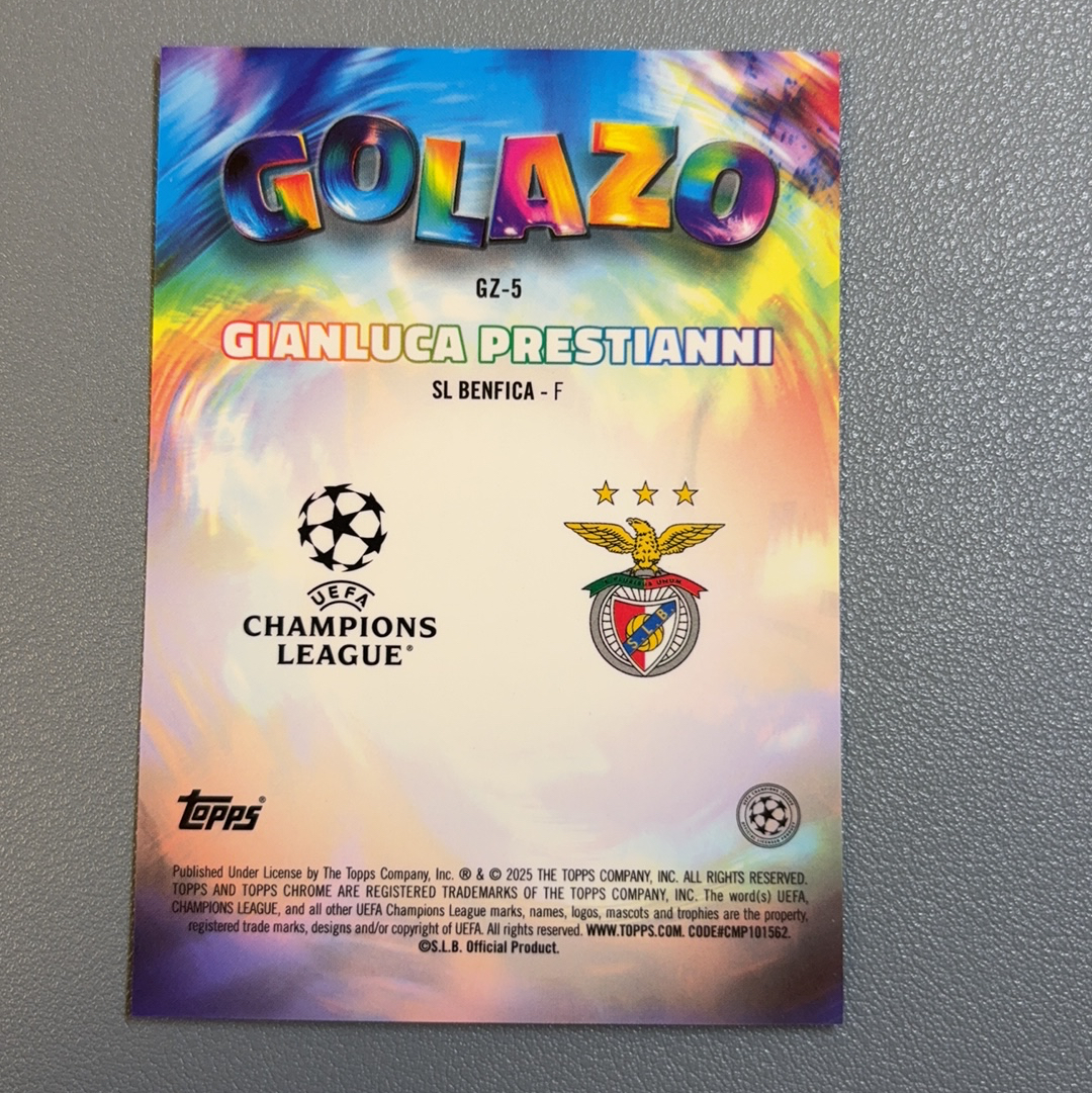 【风速狗】2025 topps Chrome hobby Gianluca Prestianni RC 欧冠TC 普雷斯蒂安尼 本菲卡 新秀 28/50编 金折  陈哥
