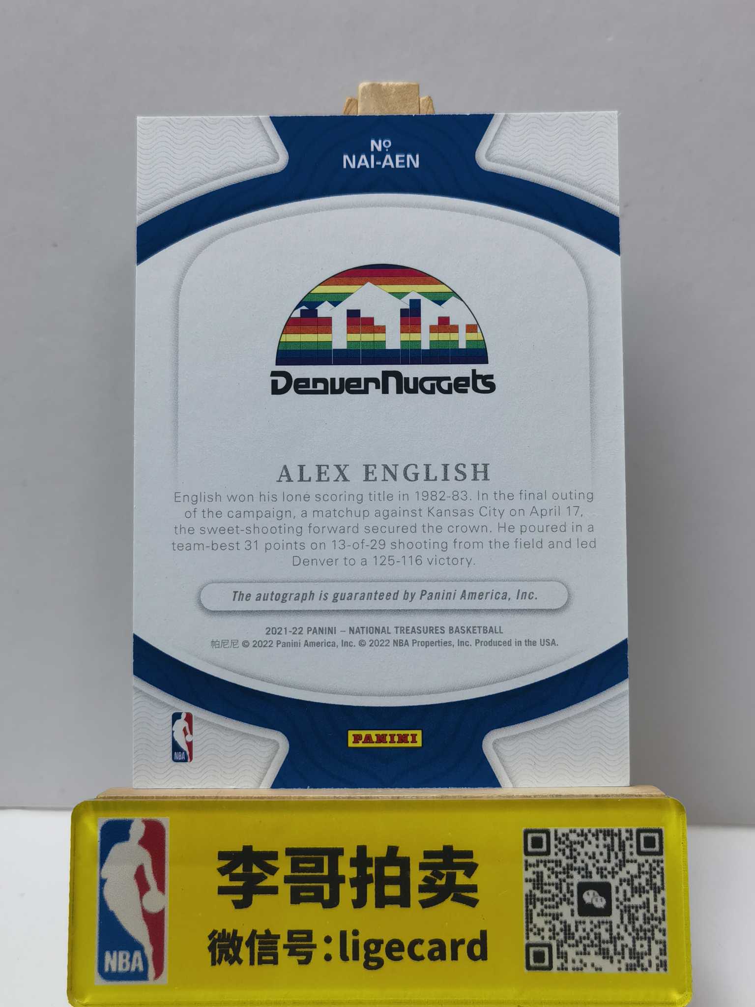 2021-22 Panini National Treasures Alex English 【李哥代卖】国宝 阿历克斯英格利什 07/10编 金平行 低编 卡签签字 ink 掘金 Misty1117